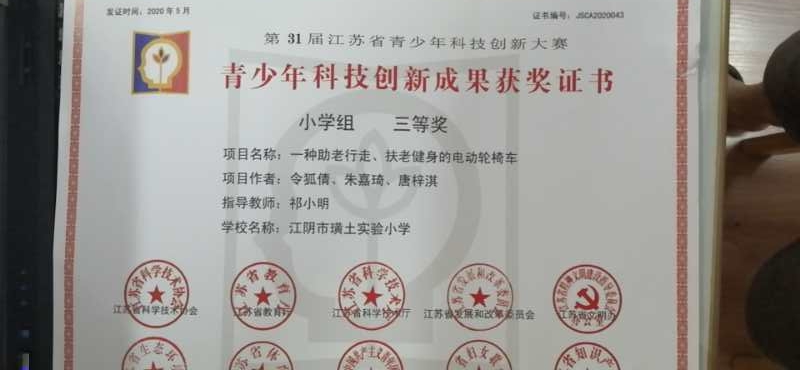 祁小明老师指导学生获江苏省青少年科技创新大赛三等奖