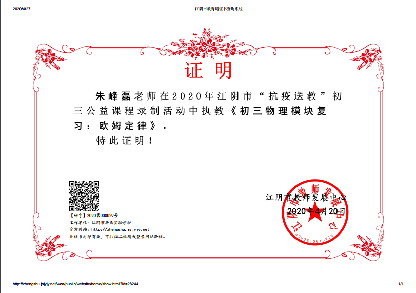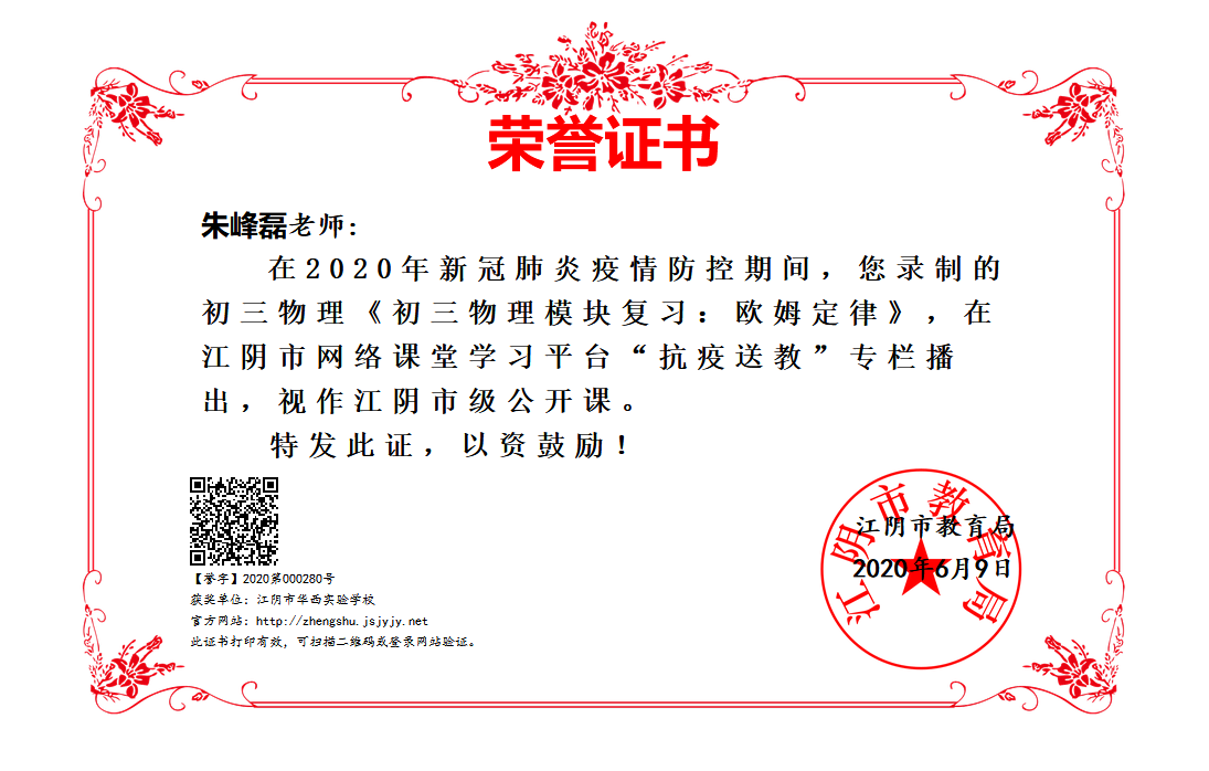 初三物理模块复习:欧姆定律(朱峰磊老师2020年江阴市“抗疫送教”公益课程录制活动)