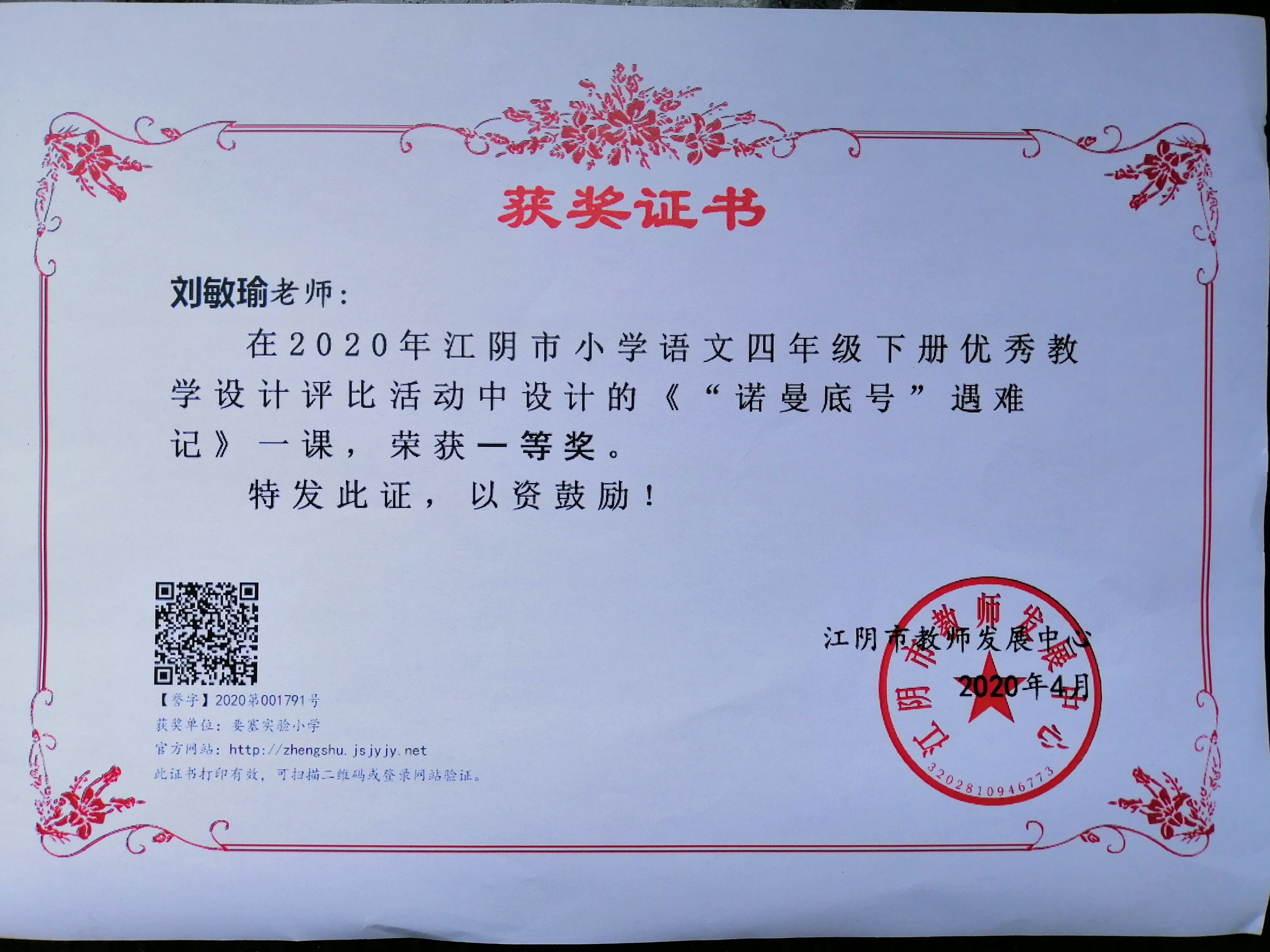 成员吴银峰在2016年无锡市中小学美术学科课堂教学获二等奖