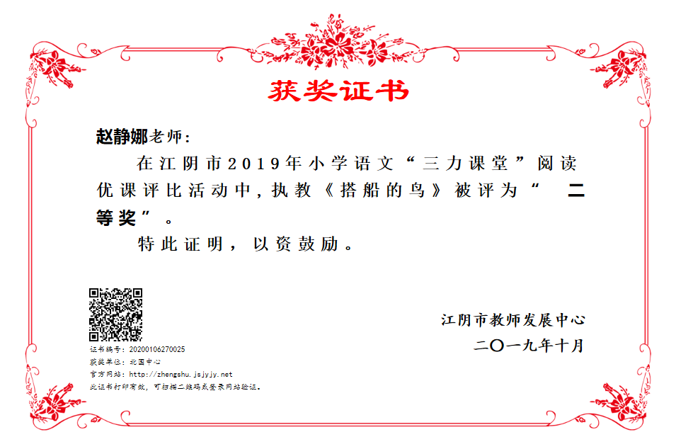 赵静娜江阴优课评比二等奖