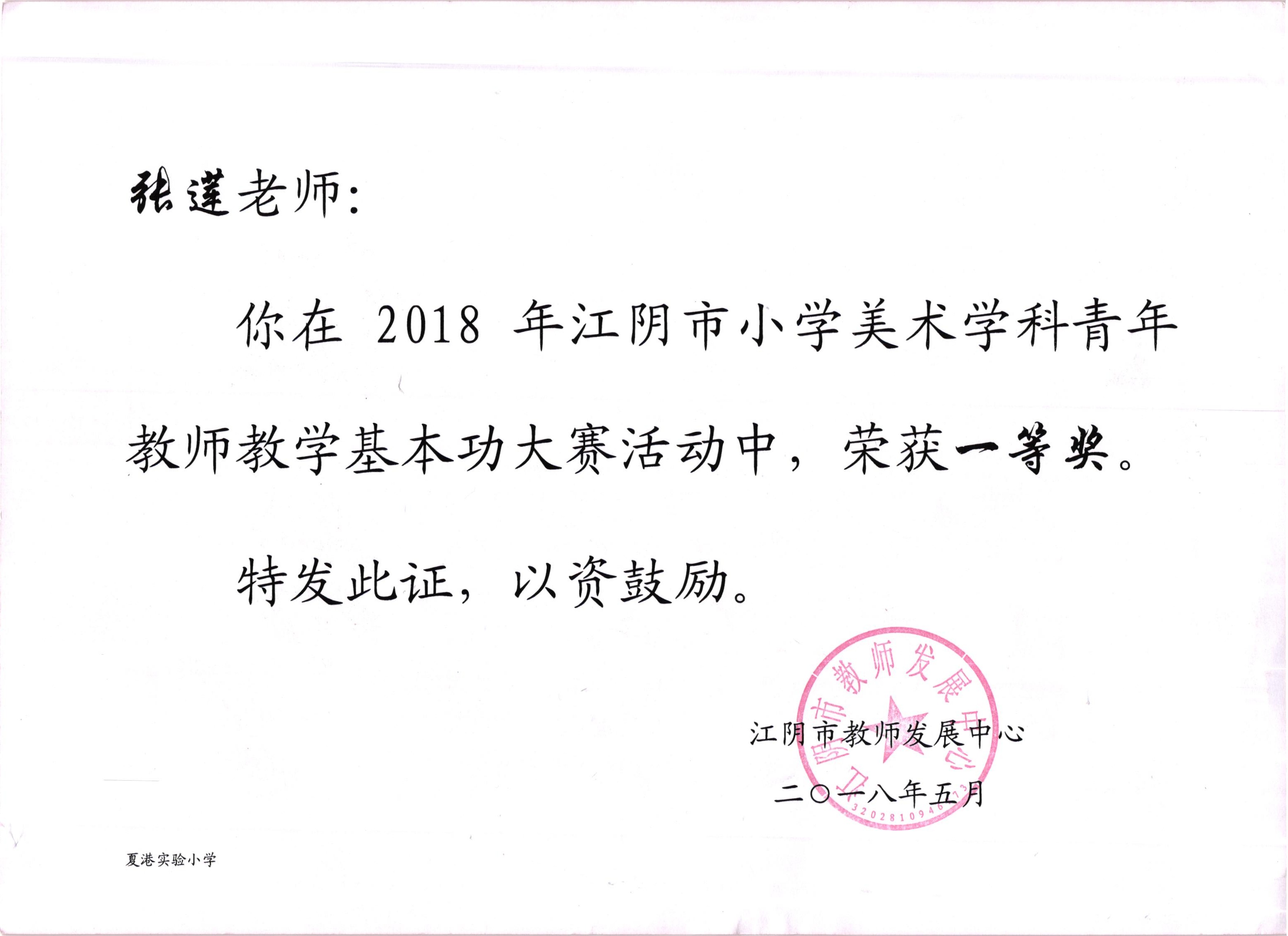 张莲荣获教师基本功大赛一等奖