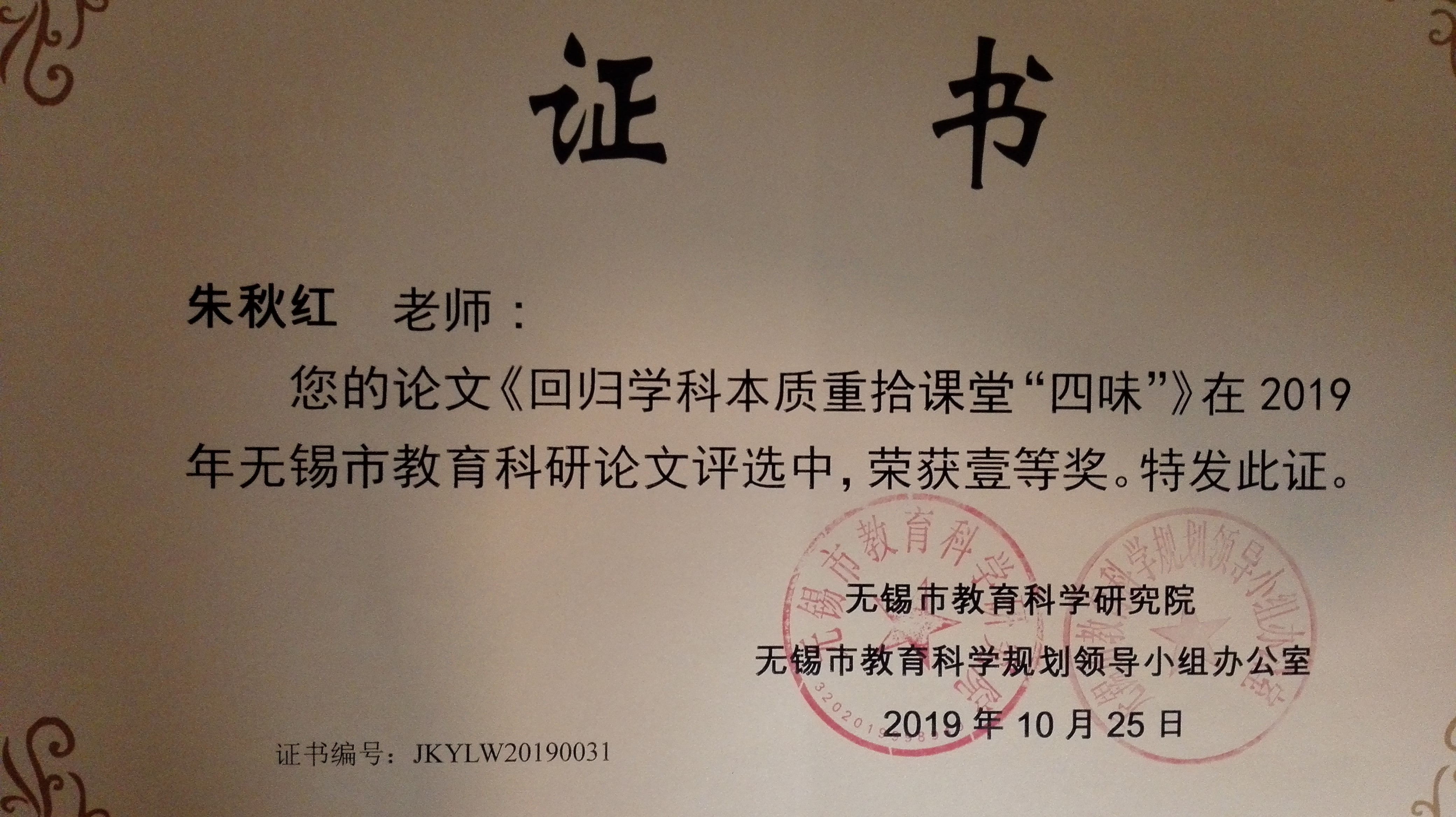 成员殷丽在2019江阴市小学美术“三力”课堂教学大比武活动中荣获二等奖