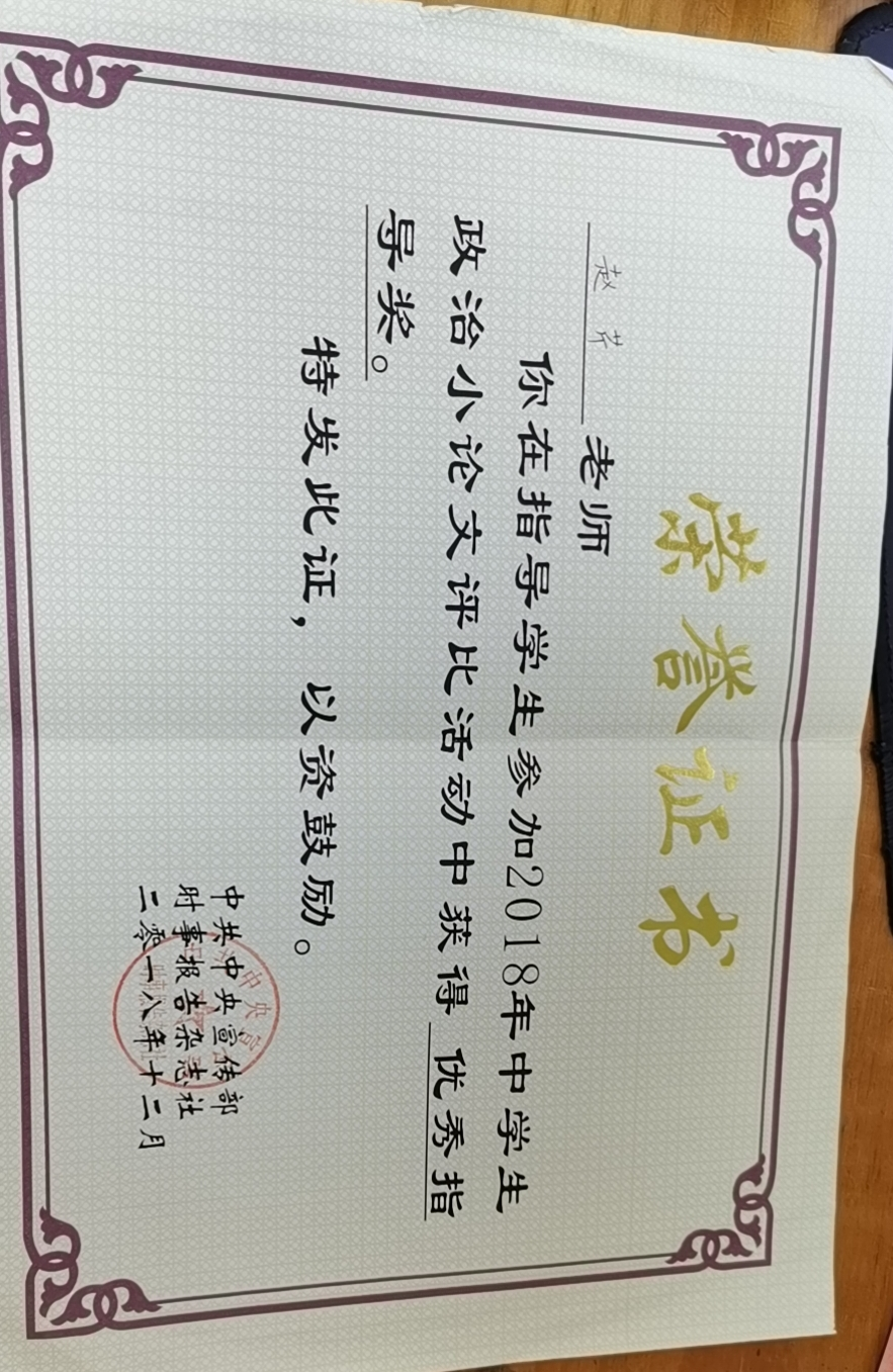 政治小论文优秀指导奖