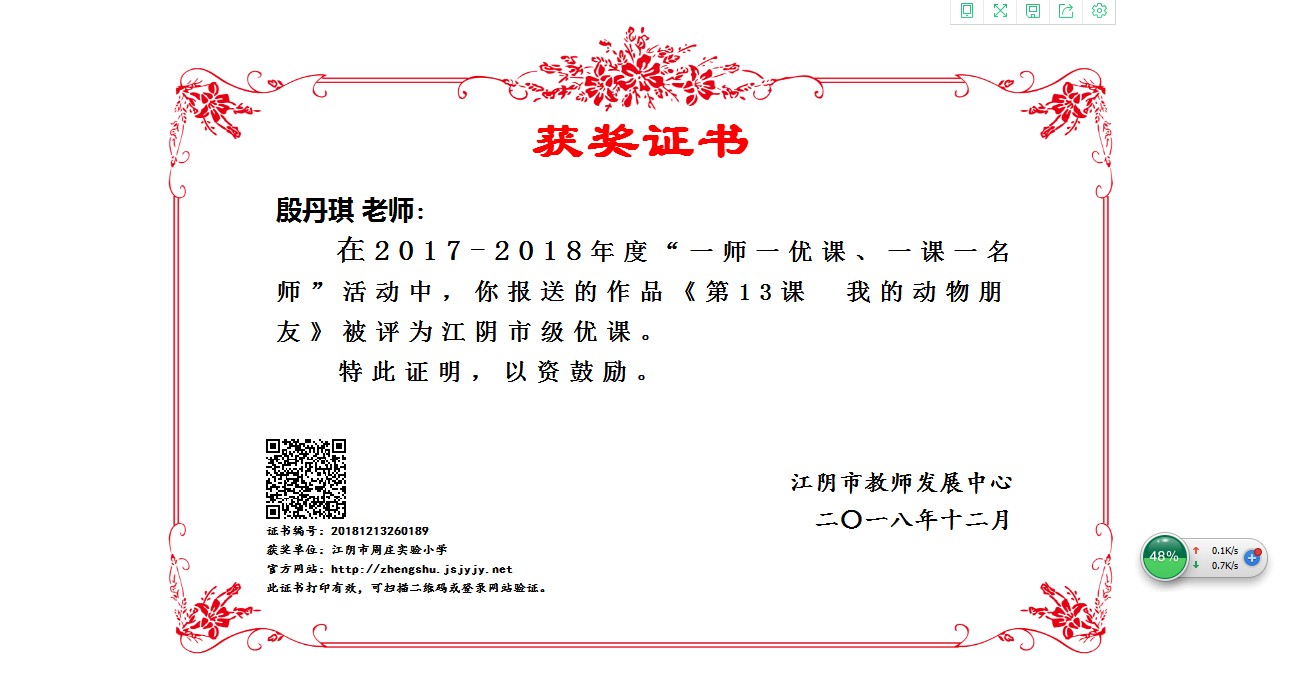 成员殷丹琪在无锡市2018年“一师一优课、一课一名师”活动中被评为“市级优课”
