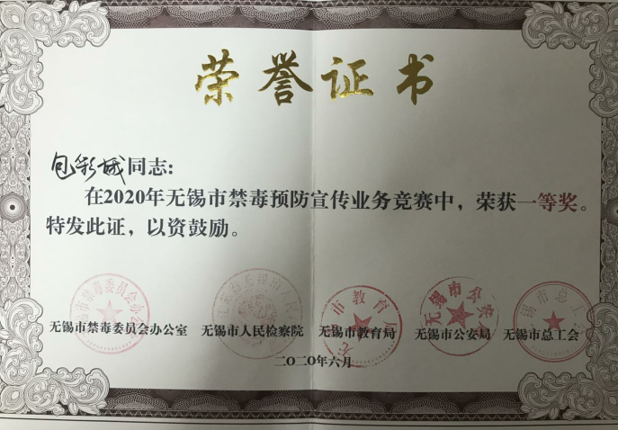 包彩娥荣获无锡市禁毒预防宣传业务竞赛一等奖