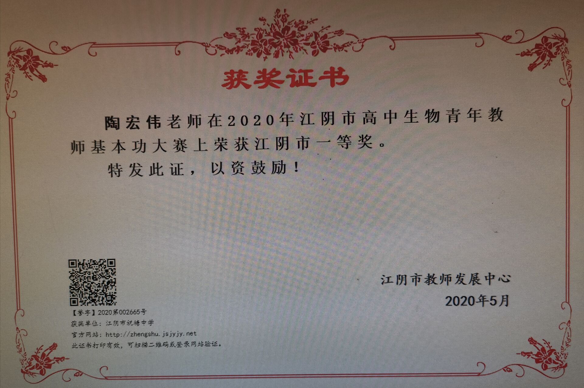江阴市高中生物青年教师基本功大赛一等奖(陶宏伟)