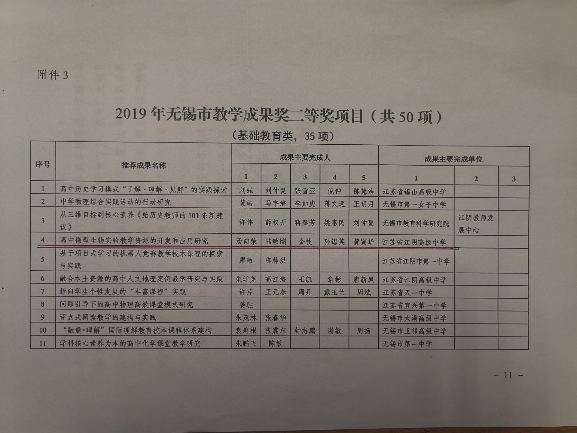 2019年无锡市教学成果二等奖(汤向荣)