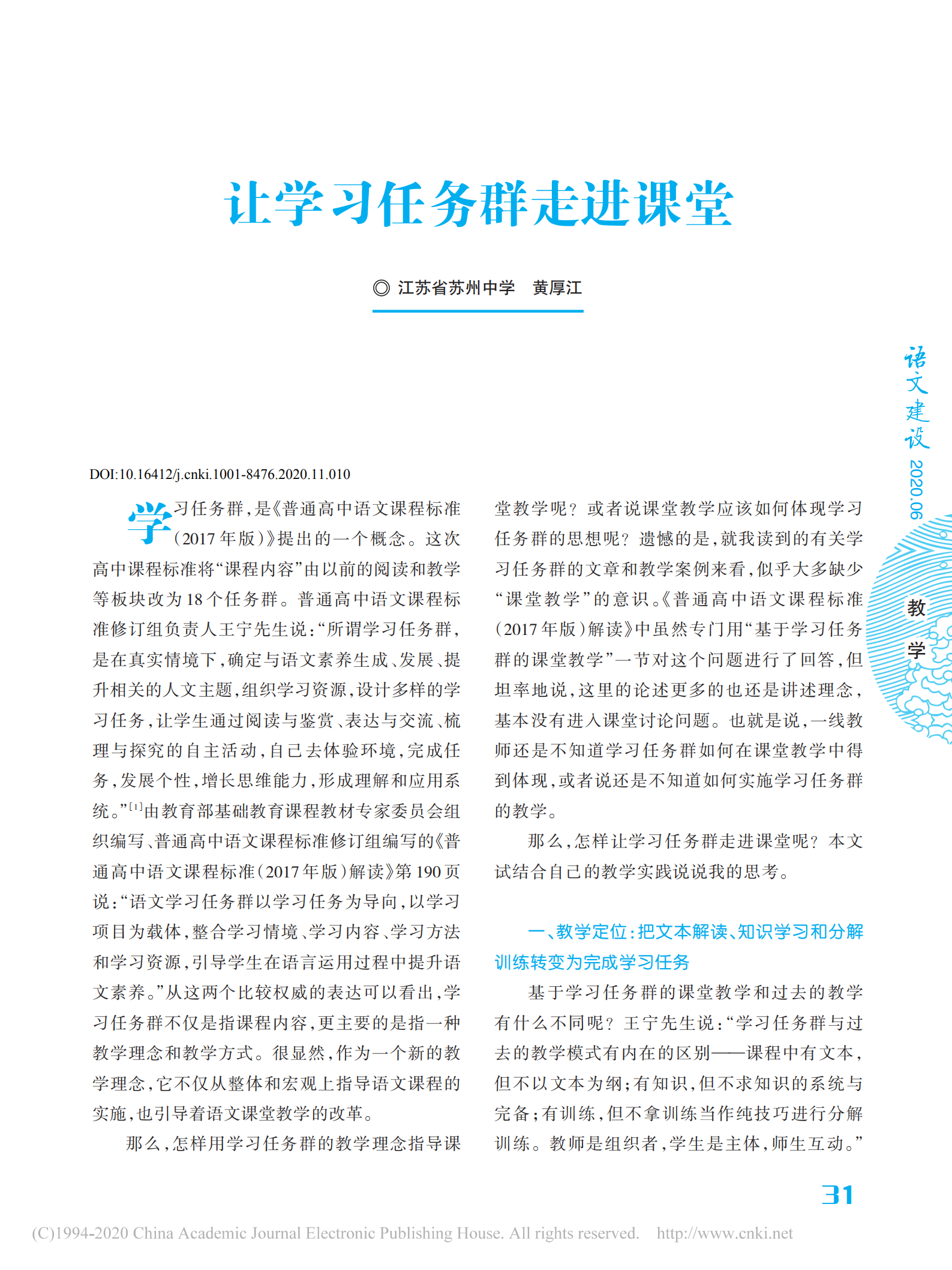 让学习任务群走进课堂