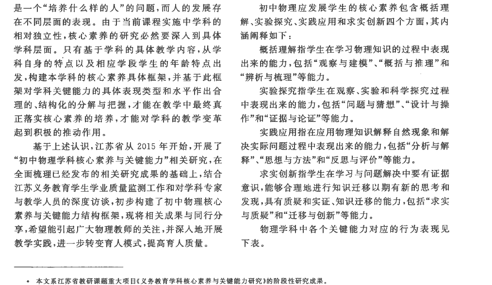 初中物理核心素养与关键能力的研究及测评实践