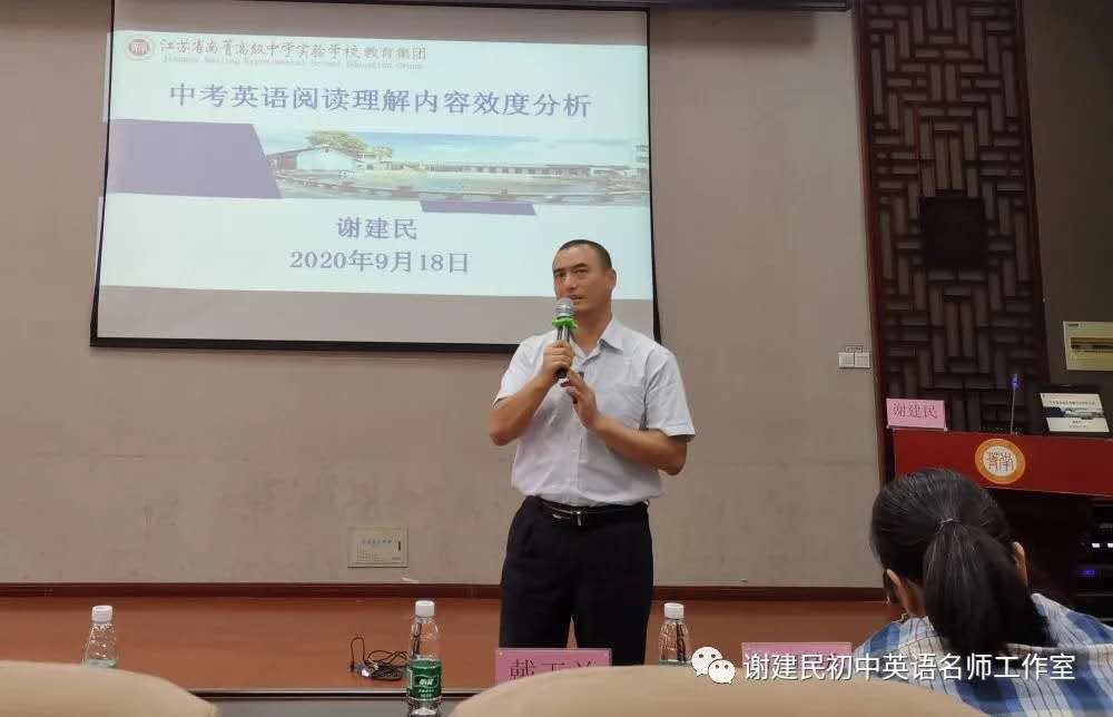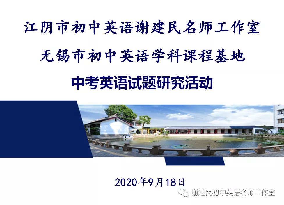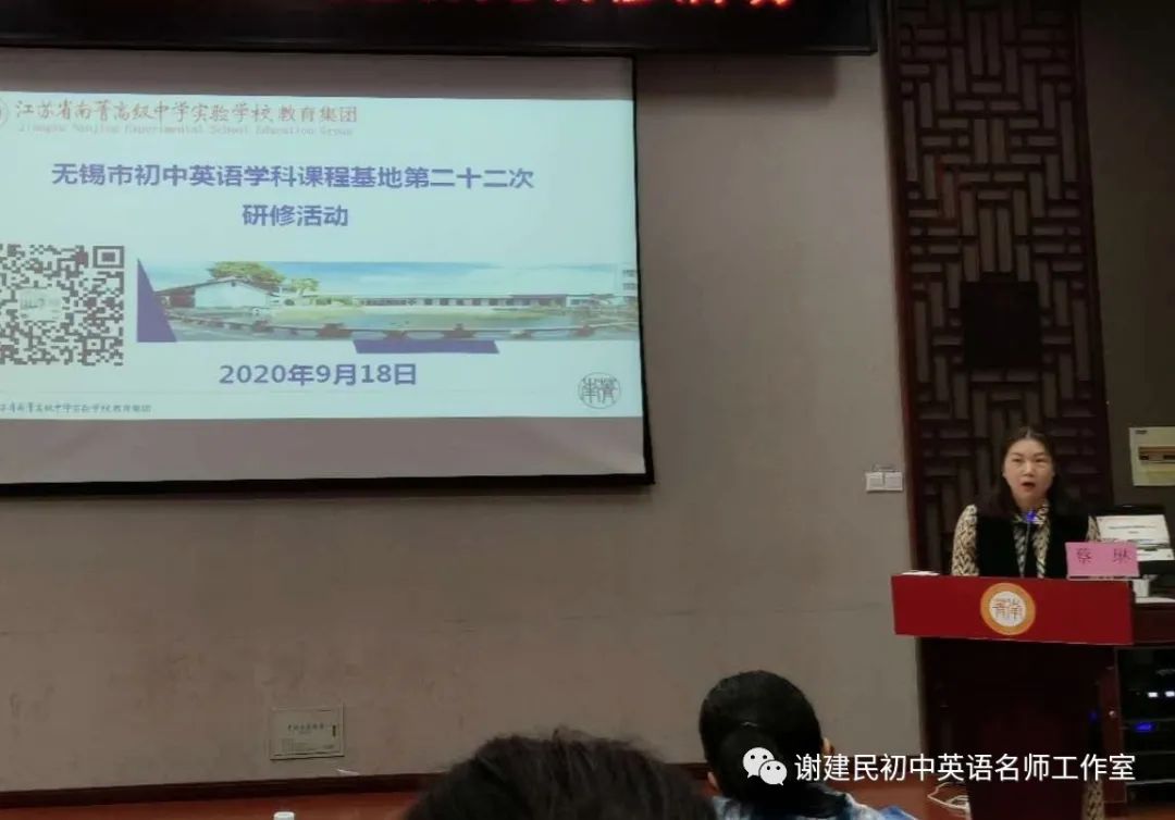 蔡琳和谢建民老师在无锡市初中英语学科课程基地和江阴市名师工作室教研活动中作中考阅卷心得分享