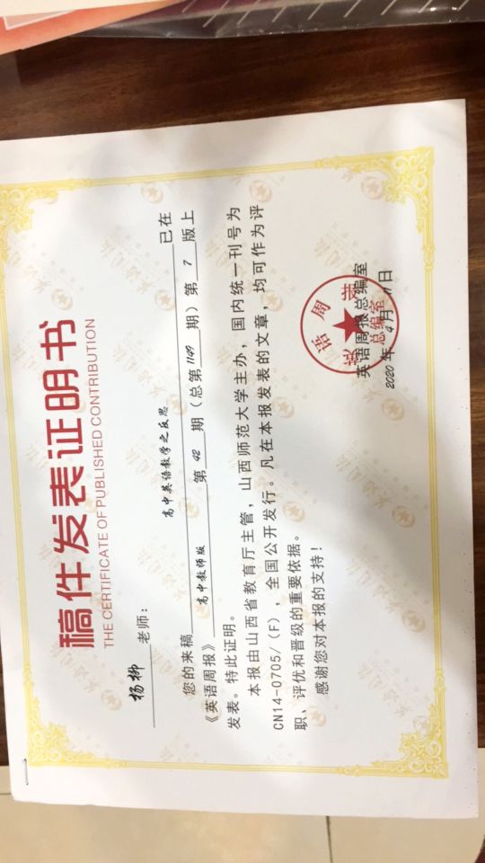 《高中英语教学之反思》在《英语周报 高中教师版》第42期第7版上发表。