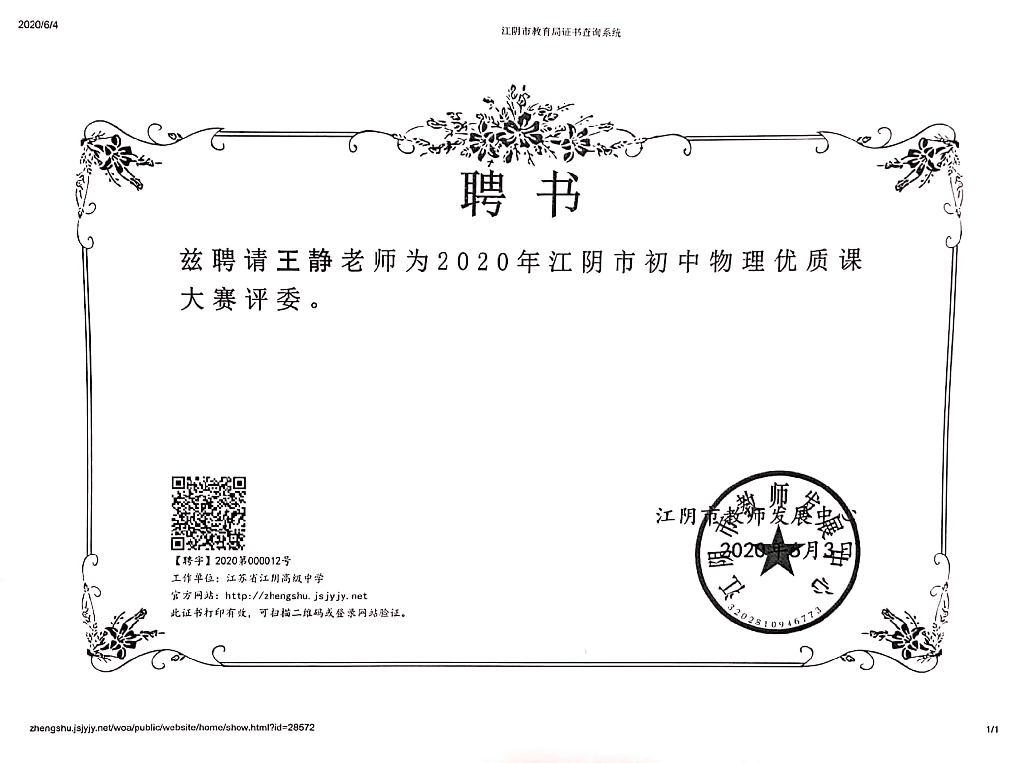 王静担任初中物理优质课评委