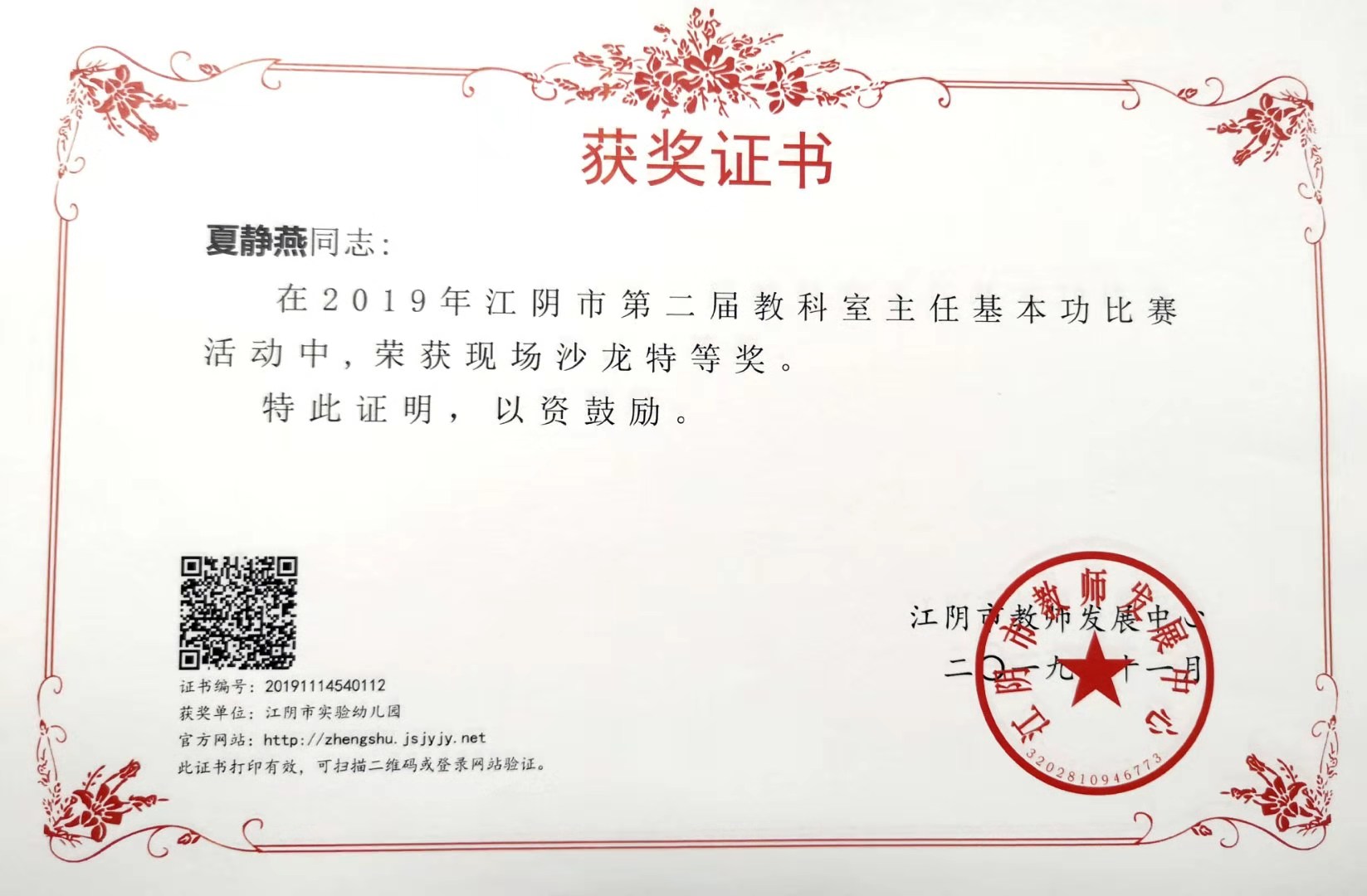 夏静燕获江阴市第二届教科室主任基本功现场沙龙特等奖