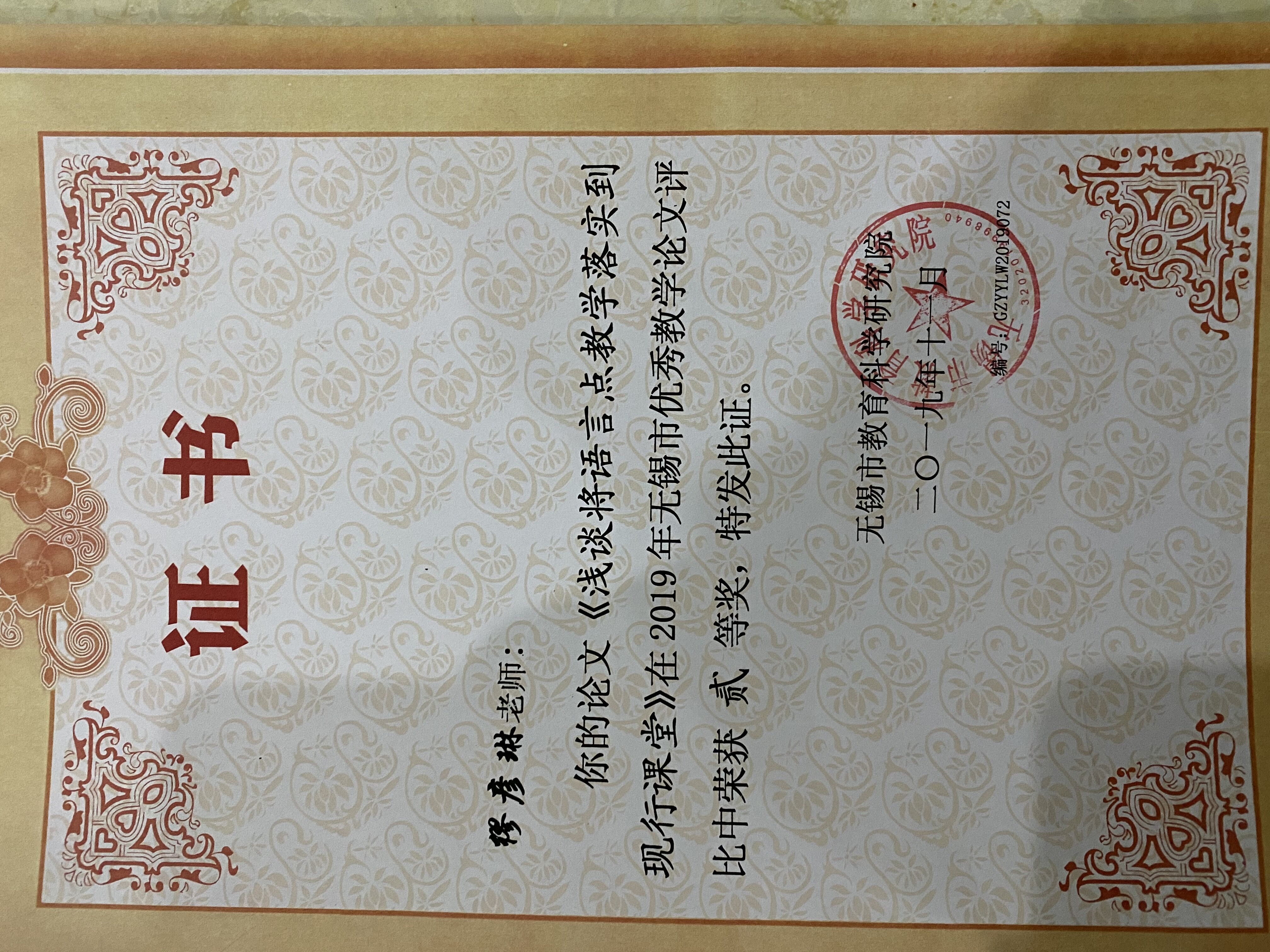 无锡市优秀教学论文二等奖