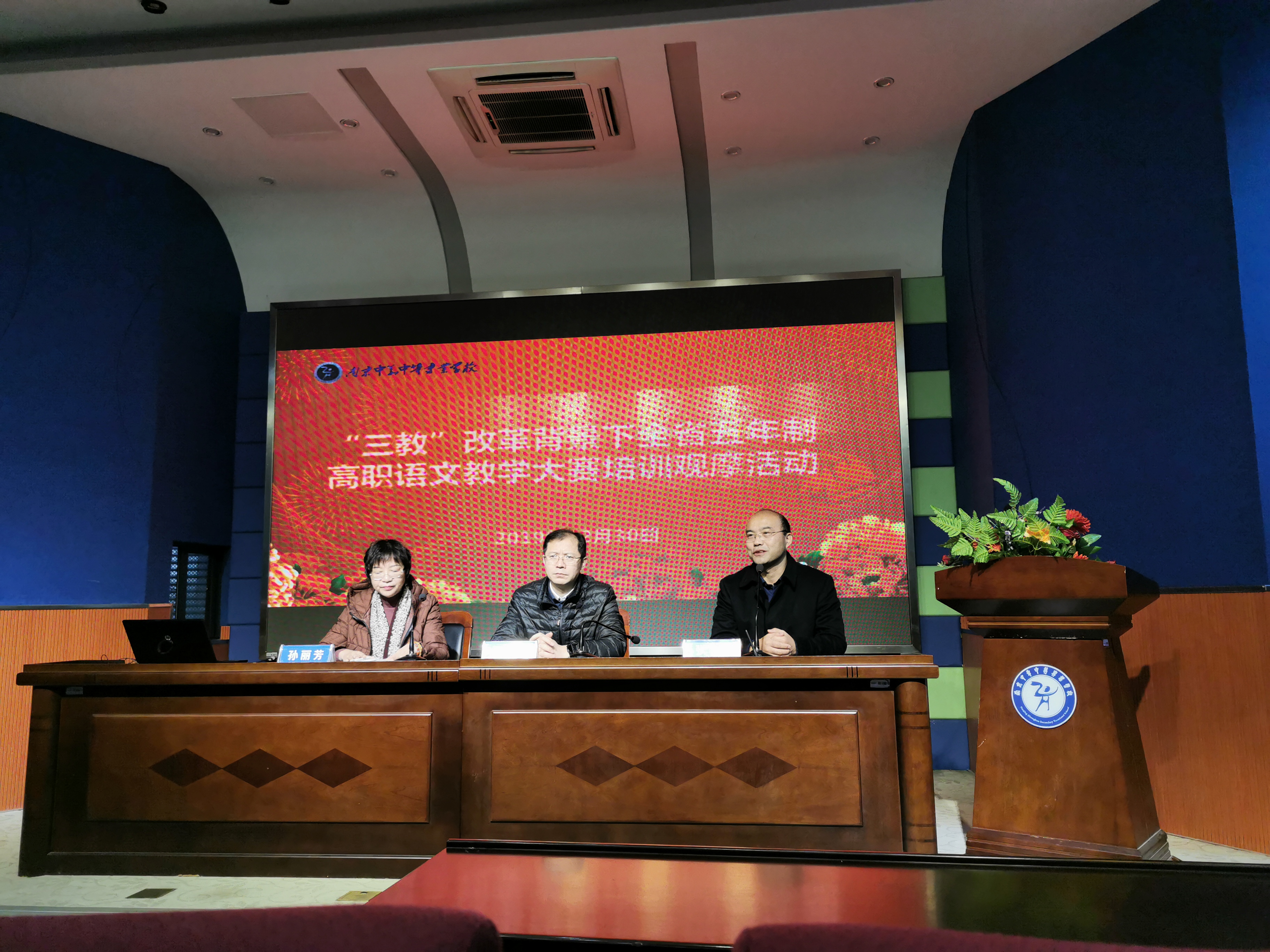 江苏联院语文教学协作组组长孙丽芳校长主持开幕式。开幕式上,南京中华中等专业学校张勇校长对与会者表示热烈欢迎,并概要介绍了学校“三教”改革工作的开展情况。