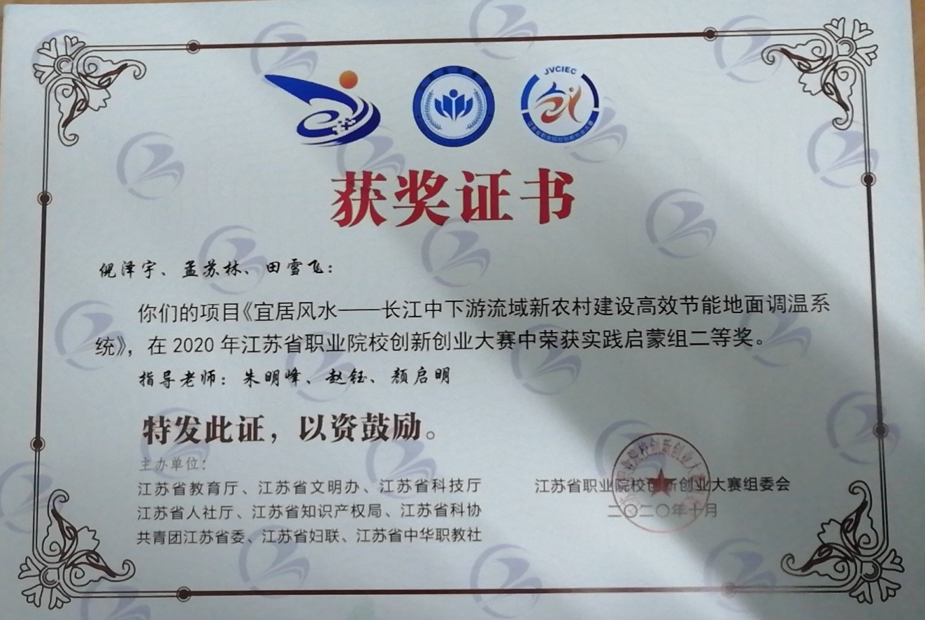 朱明峰老师指导学生获江苏省互联网+创新创业大赛二等奖 2020-10-26