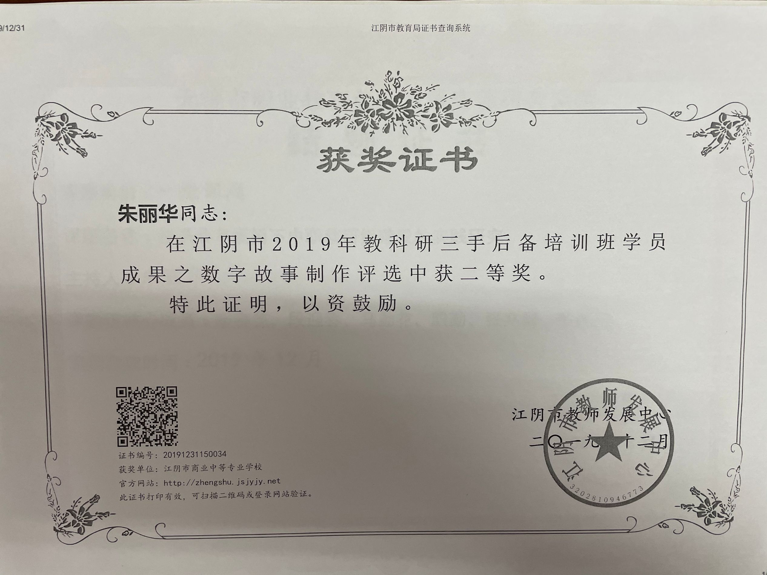 朱丽华老师获江阴市数字故事制作评比二等奖