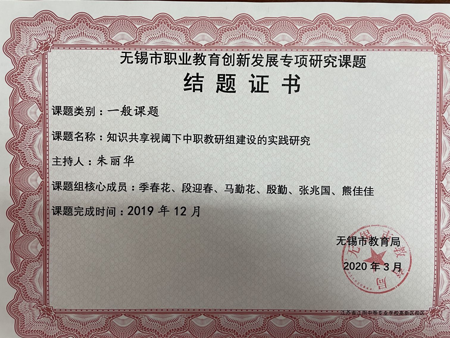 朱丽华老师无锡市创新课题结题