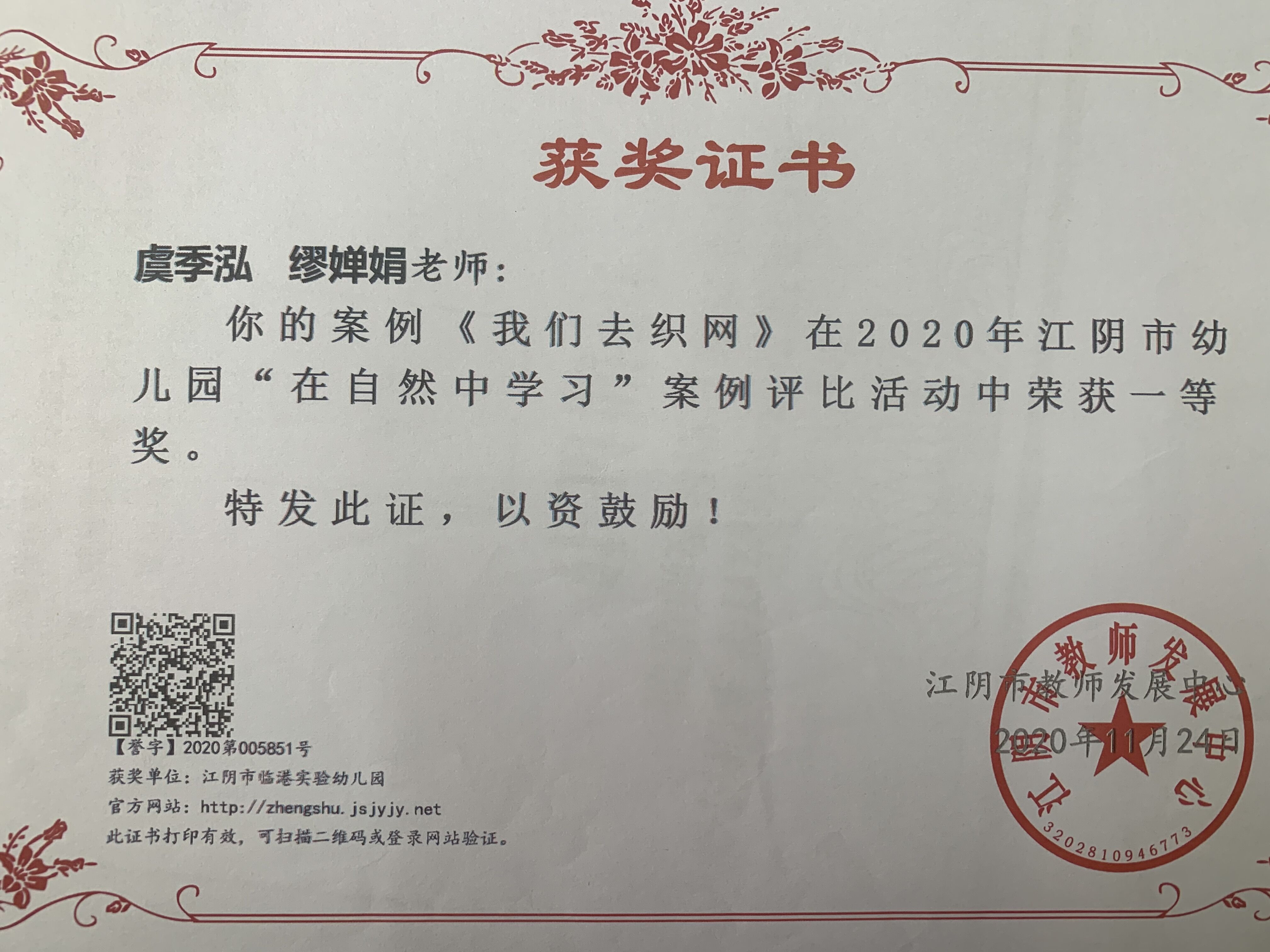 缪婵娟秋溢峰影杯在自然中学习案例获江阴市一等奖