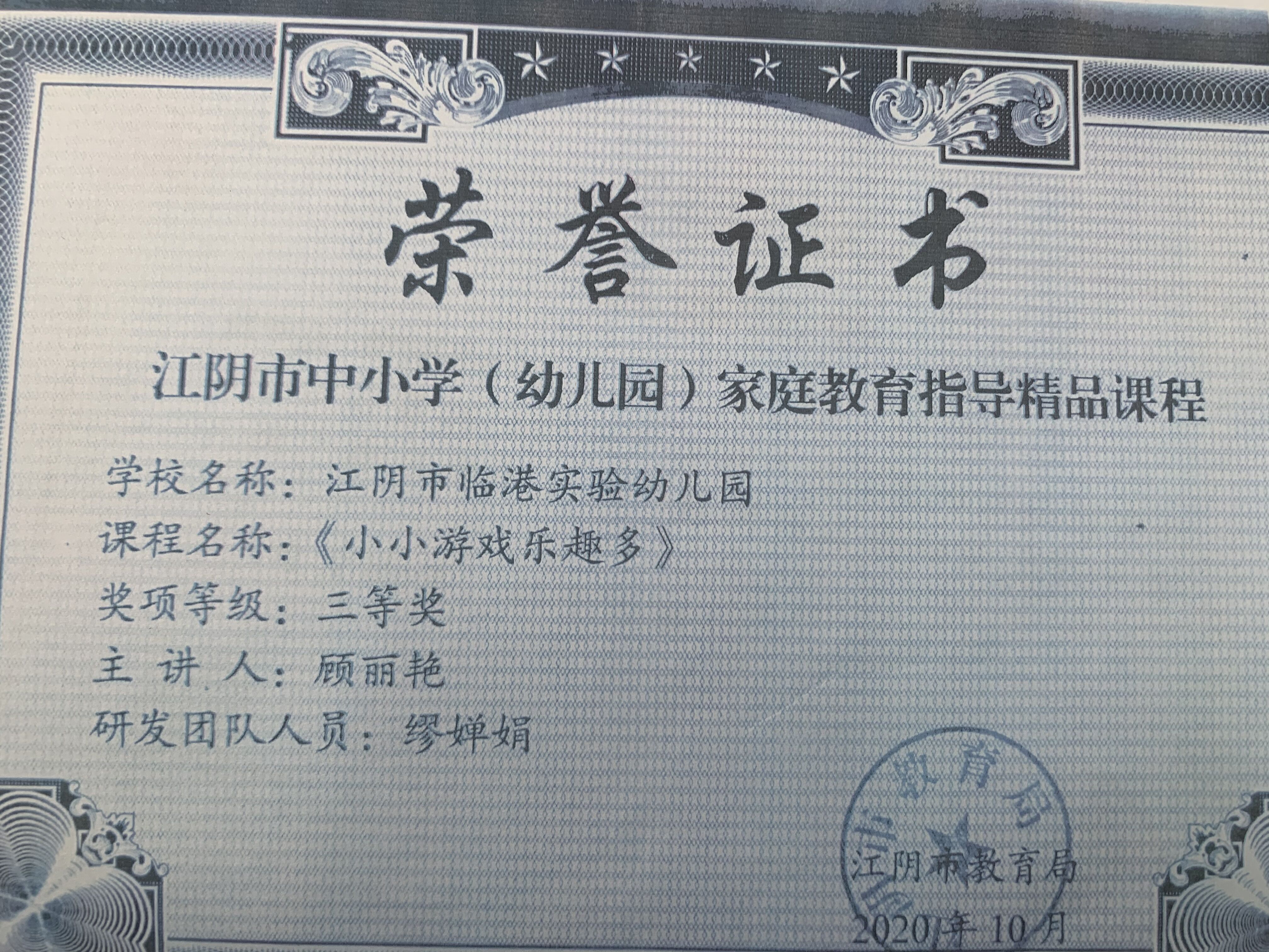 缪婵娟老师家庭教育指导精品课程获三等奖
