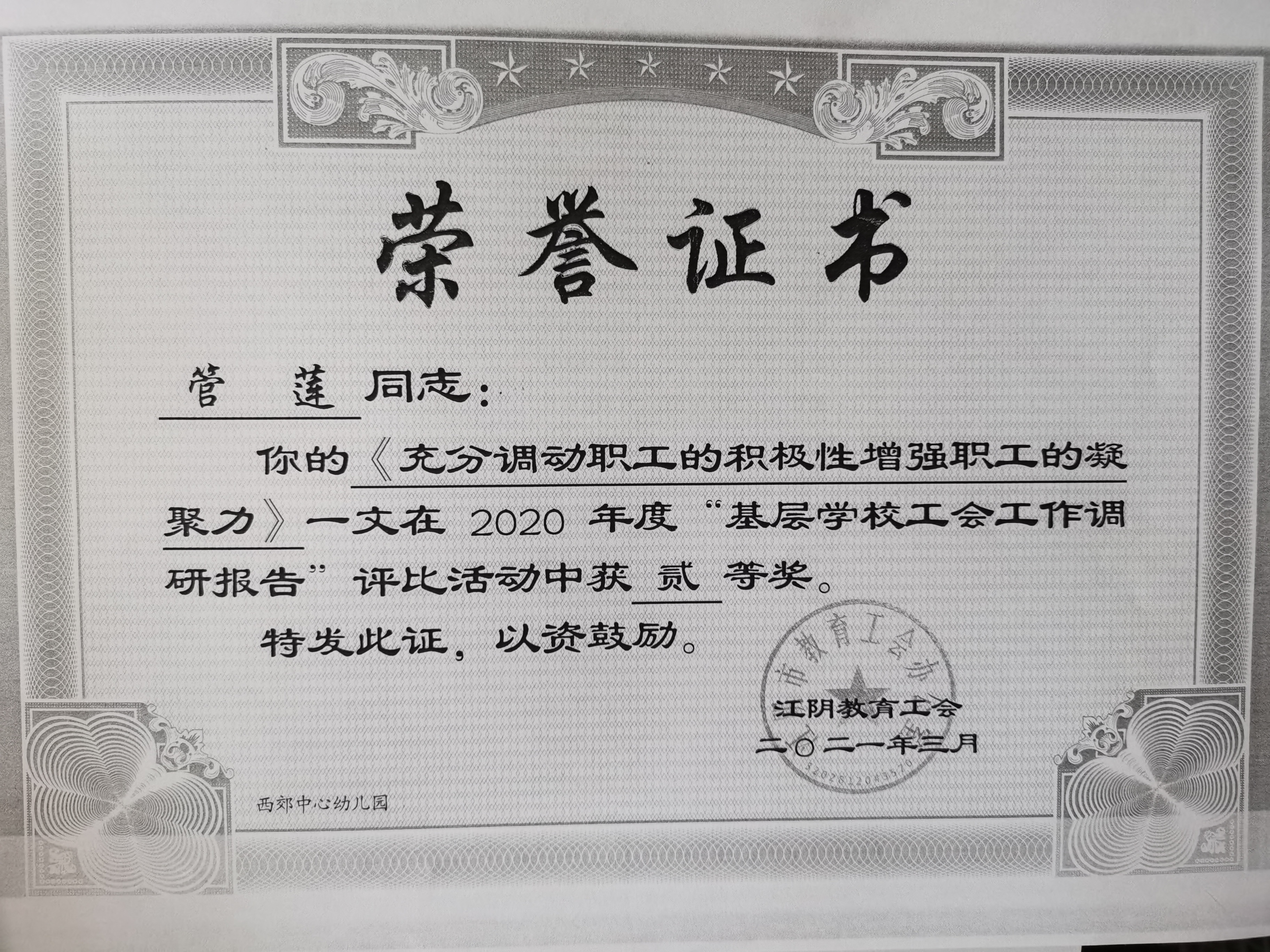 管莲基层工会调查报告《充分调动职工的积极性增强职工的凝聚力》获二等奖