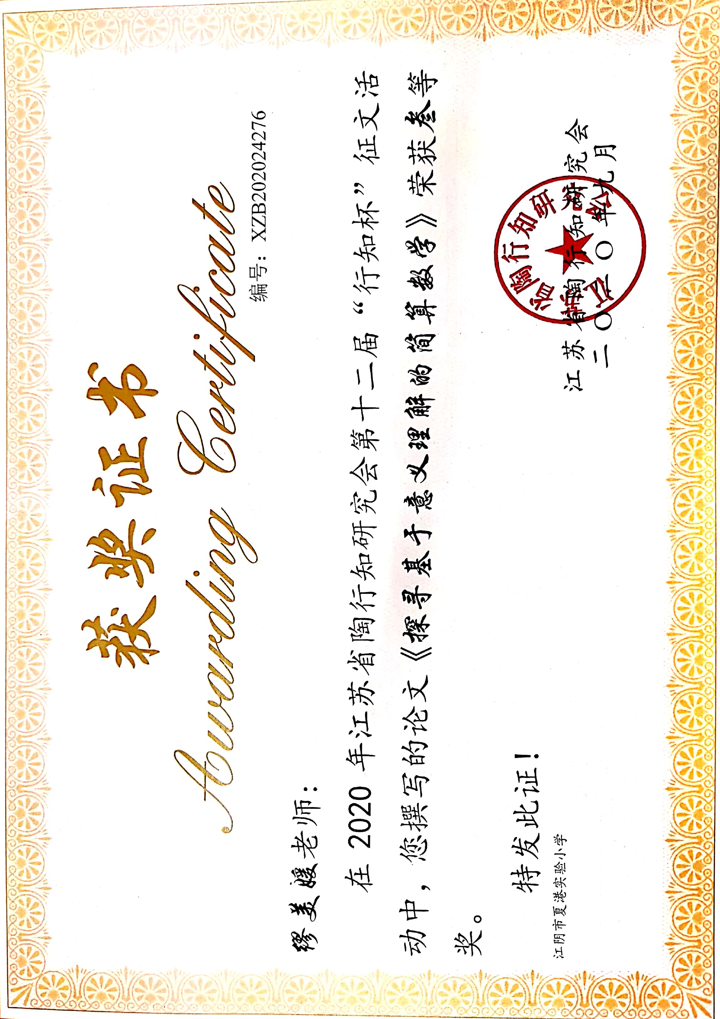 论文《探寻基于意义理解的简算教学》获省三等奖