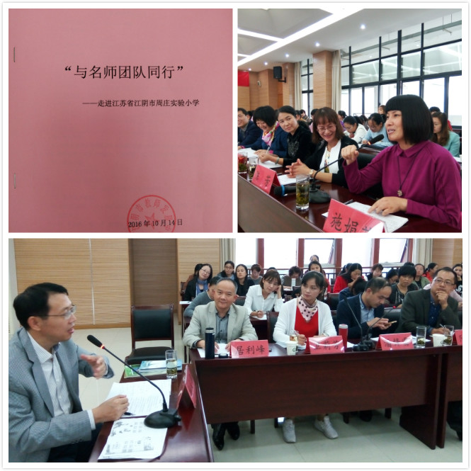 10月14日下午,“与名师团队同行”——费洁名师工作室专题研讨活动在周庄实验小学东校区举行,费洁名师工作室全体成员、江阴市第二期小学语文备课组长培训班全体学员参加了此次活动。《小学语文教师》主编杨文华应邀莅临指导。