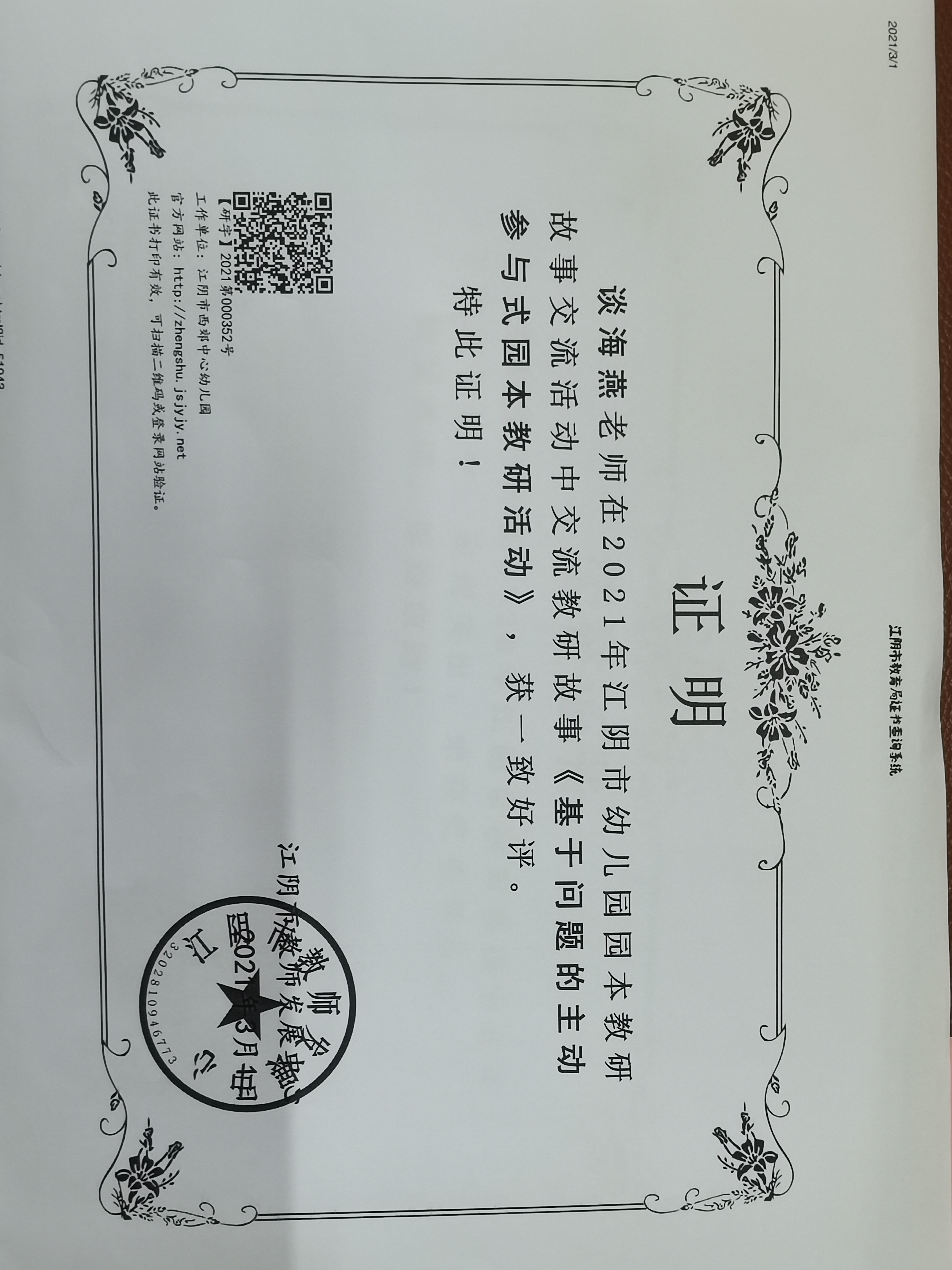 谈海燕在2021年江阴市幼儿园园本教研故事交流活动中交流教研故事《基于问题的主动参与式园本教研活动》