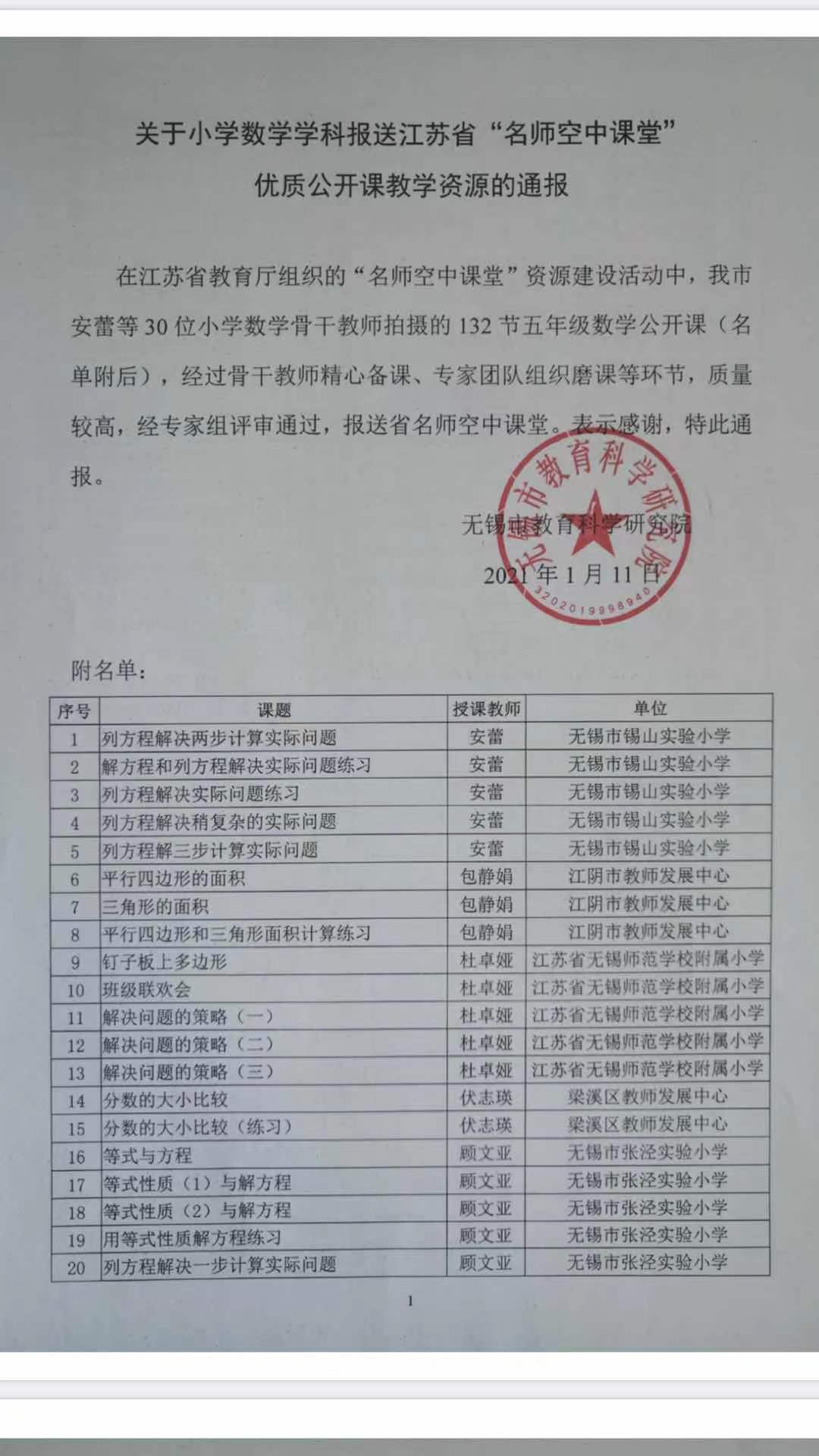 数学公开课《梯形面积计算练习》省“名师空中课堂”录用
