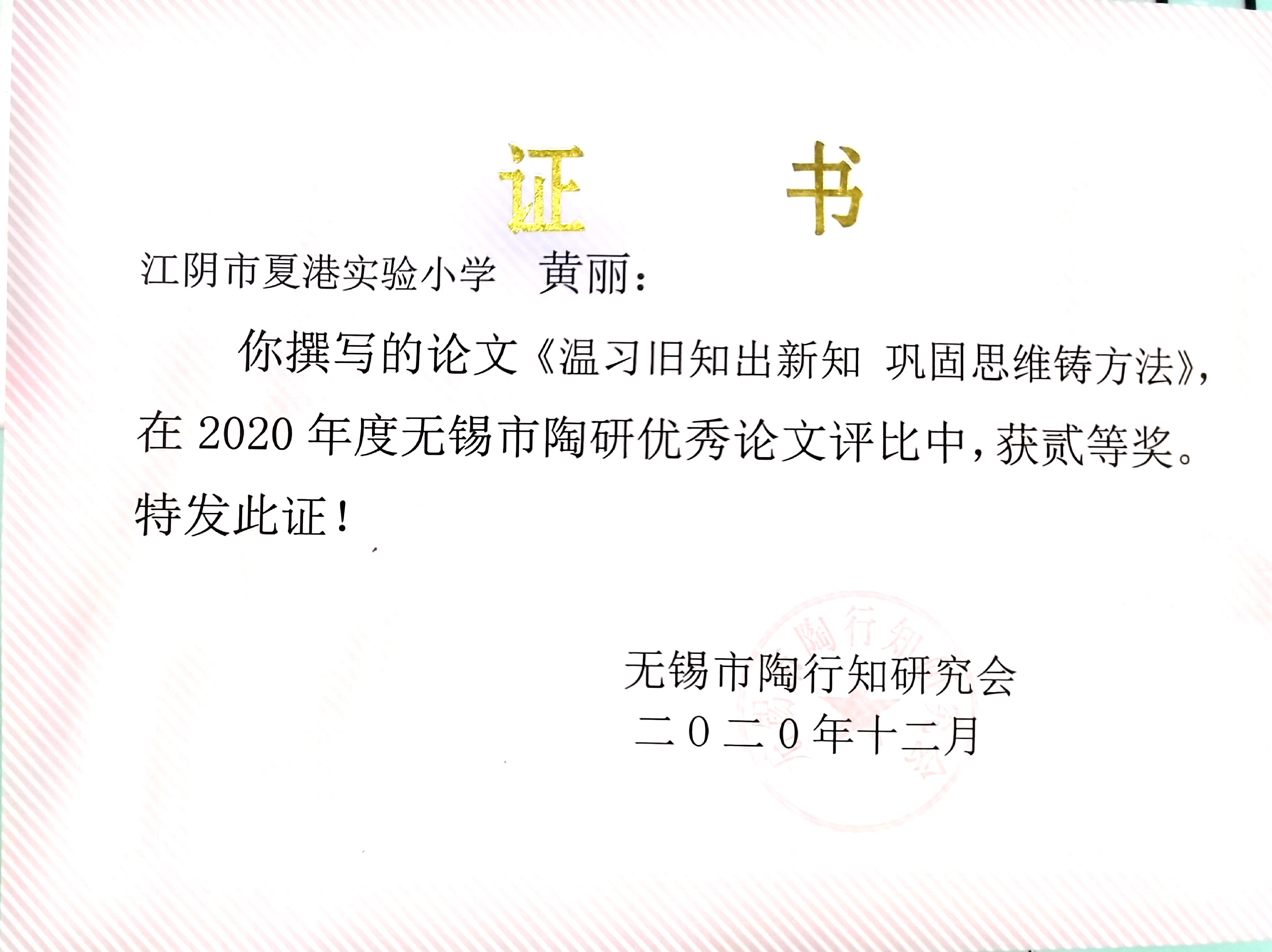 论文《温习旧知出新知,巩固复习铸方法》获无锡市二等奖