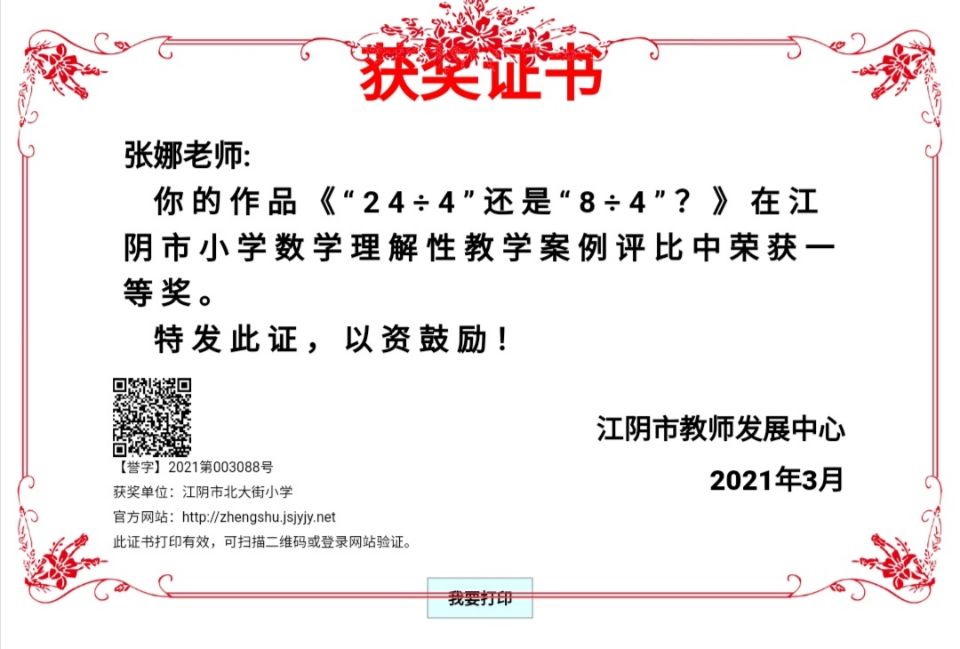 案例《24÷4还是84÷4》获市一等奖