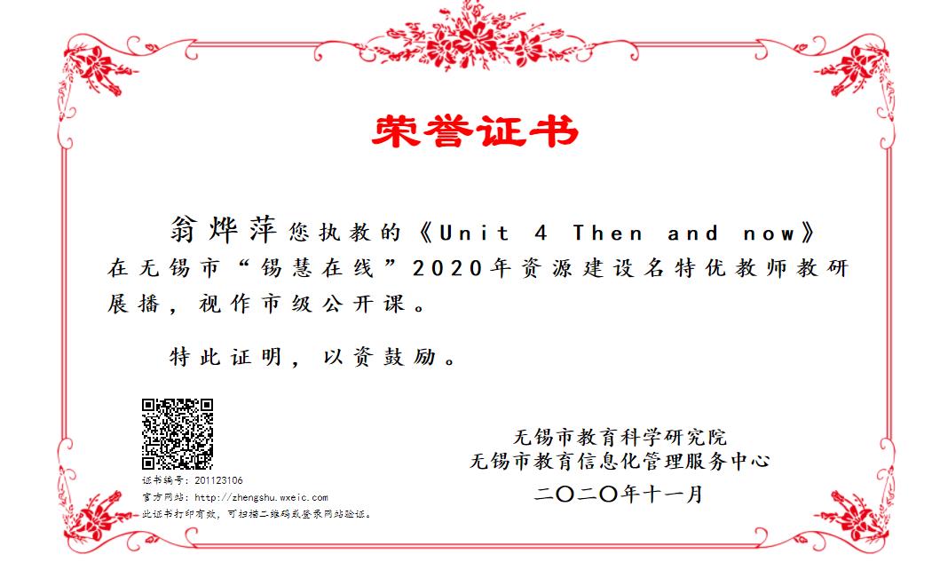 翁烨萍老师执教"锡惠在线"无锡市级公开课《Unit 4 Then and now》第四课时