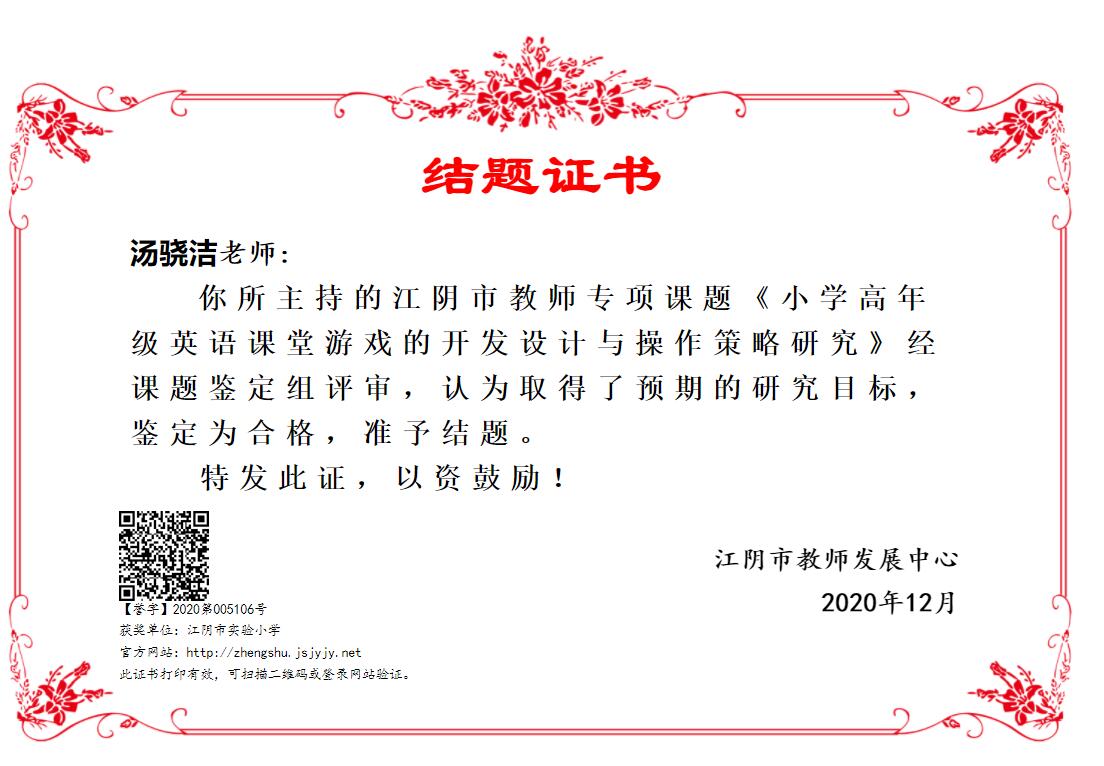 邵蓉老师获得无锡市小学青年教师优质微课评比二等奖