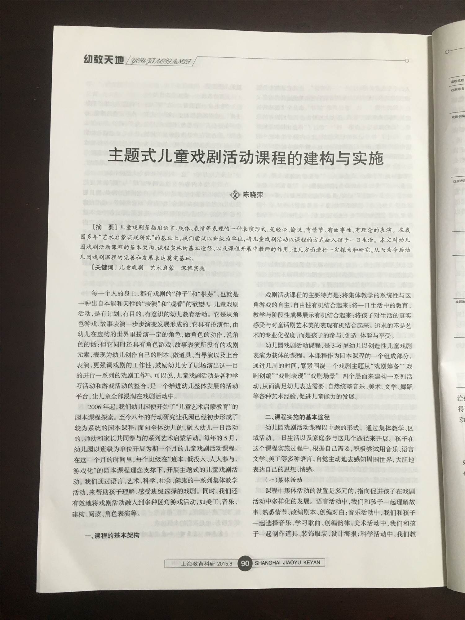 陈晓萍论文《主题式儿童戏剧活动课程的建构与实施》在《上海教育科研》杂志发表