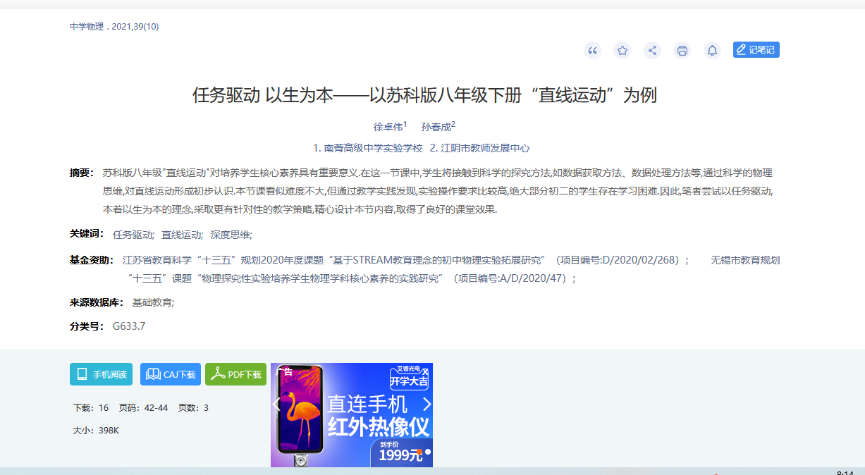 工作室学员徐卓伟论文发表在《中学物理》