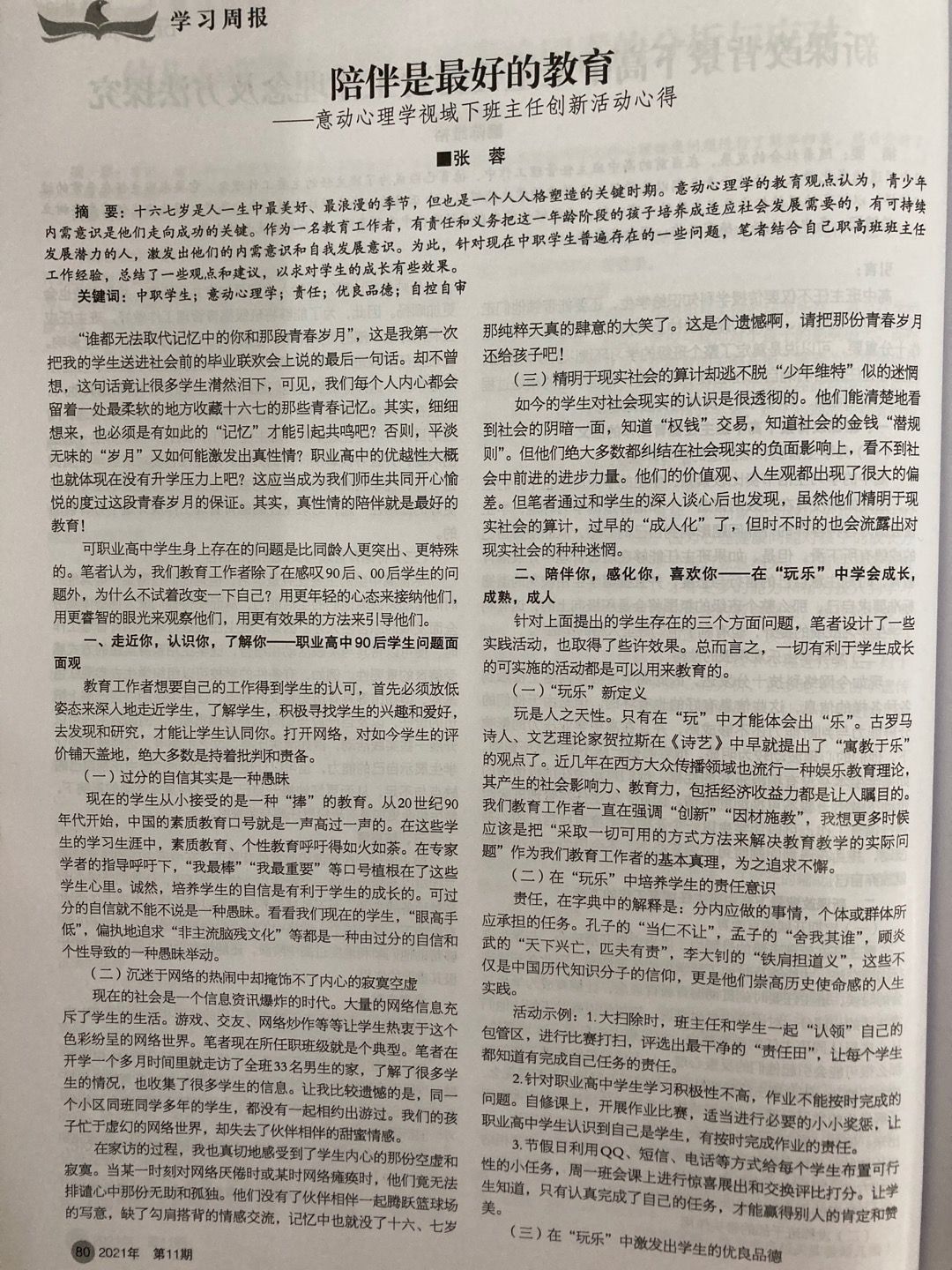 发表刊物:《学习周报·学科教研》