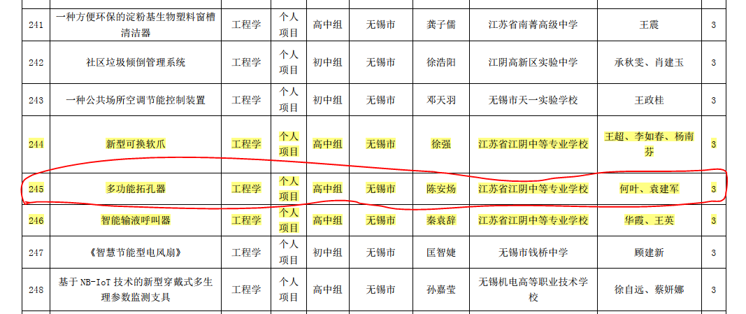 2021年5月,何叶老师指导学生作品获江苏省青少年科技创新大赛高中组三等奖