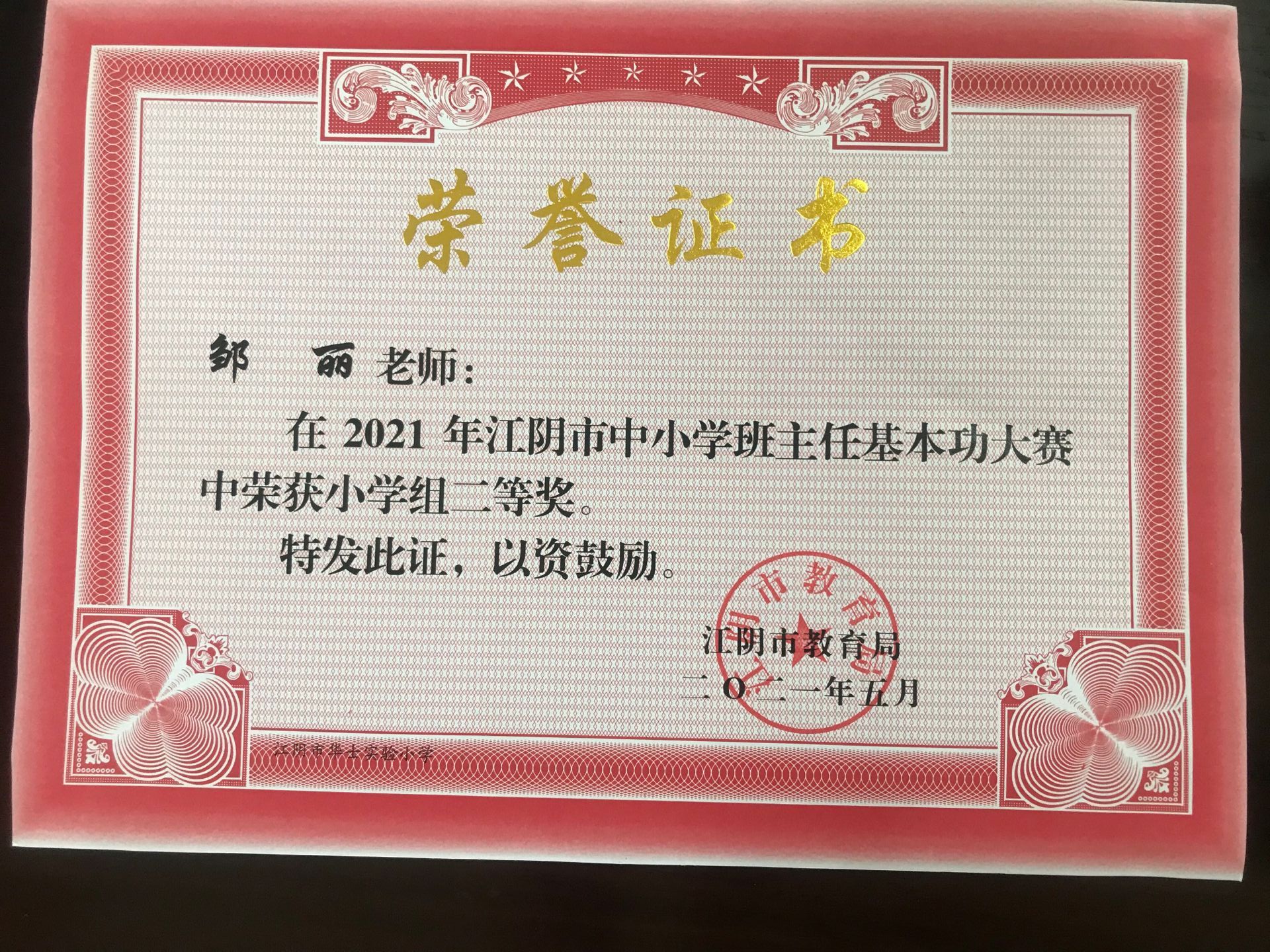 余家宇名师工作室成员邹丽老师获得江阴市班主任基本功大赛二等奖
