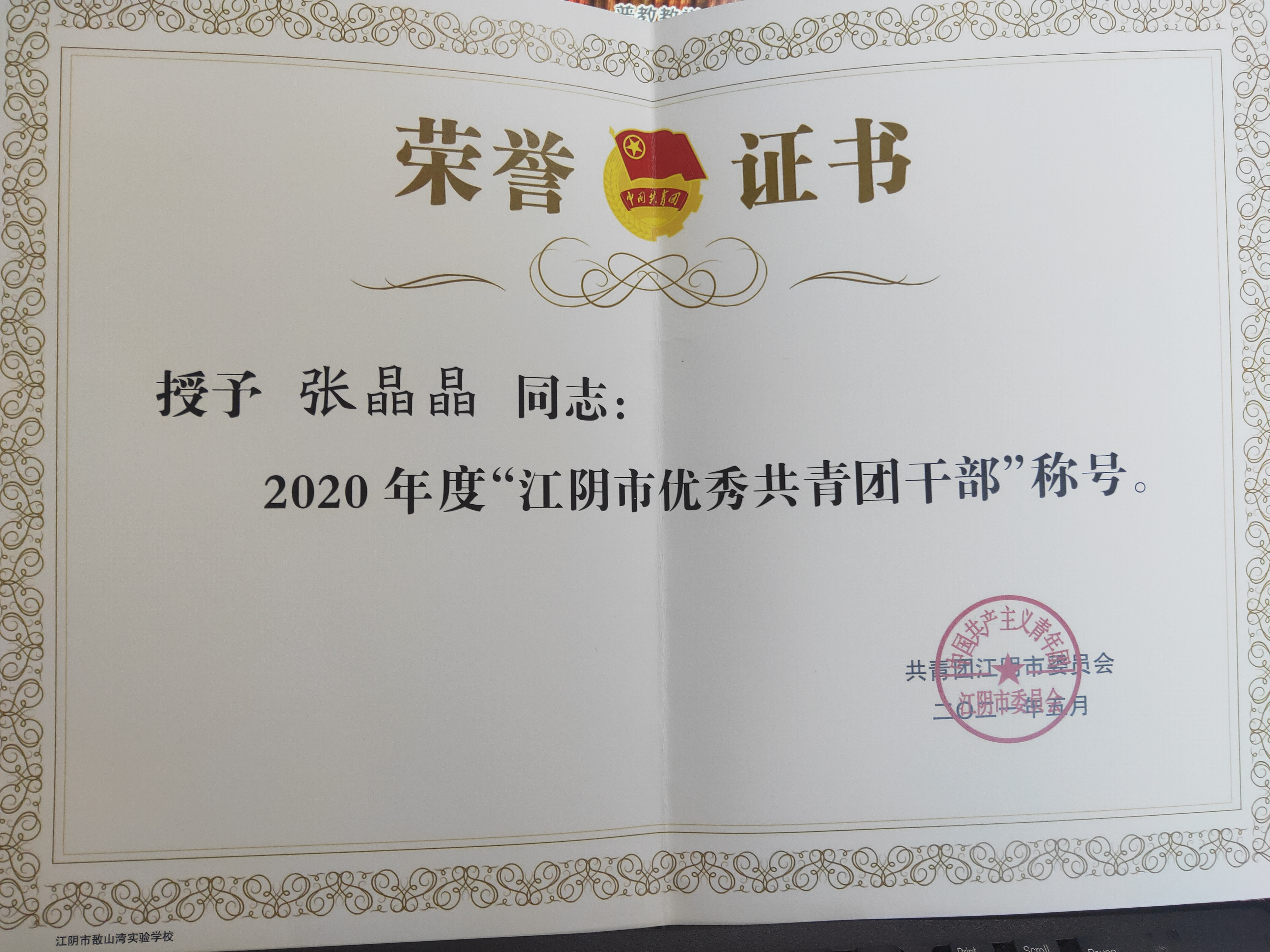 余家宇名师工作室成员张晶晶老师获得江阴市优秀共青团干部称号 2021-08-19