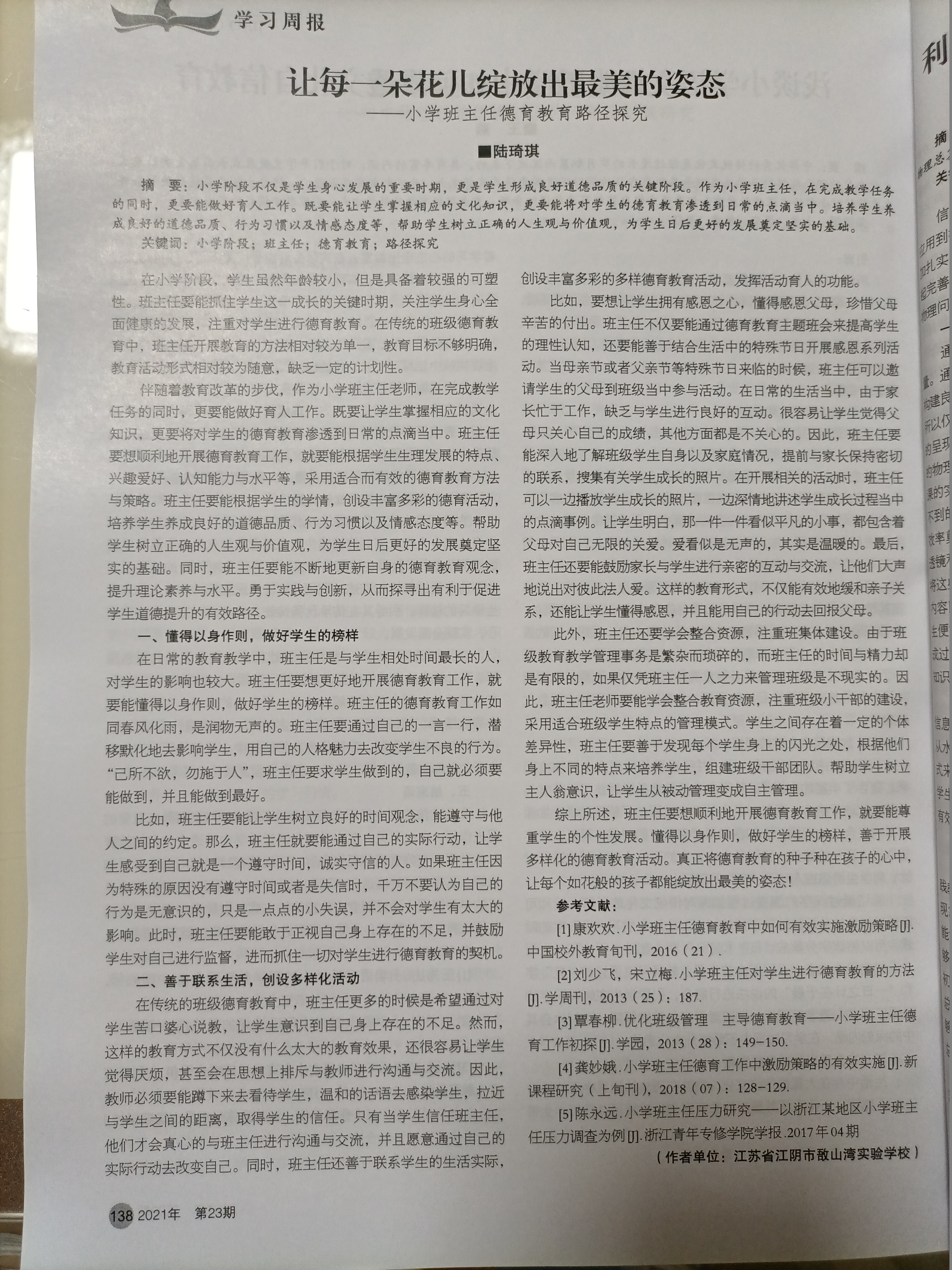 余家宇名师工作室成员陆琦琪论文发表在学科教研杂志
