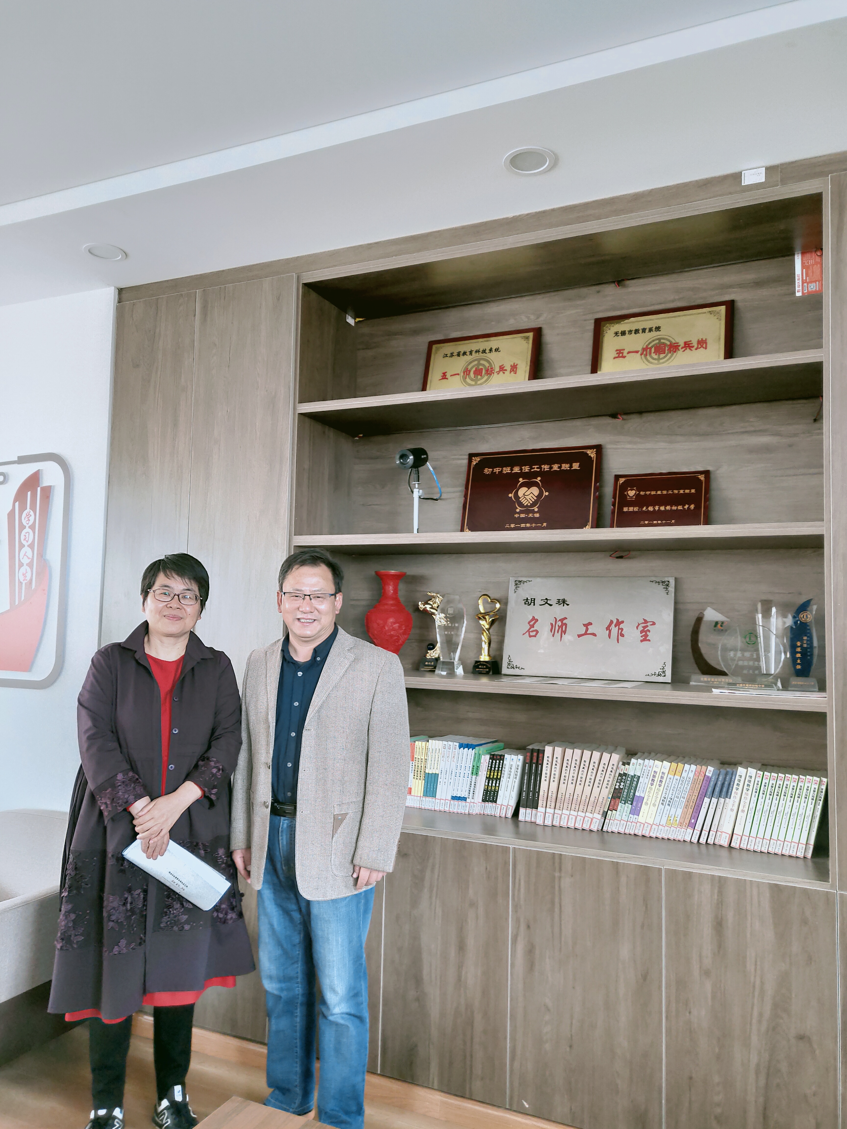 首先在胡文珠老师的带领下参观校园,走进工作室,胡文珠工作室研究项目组主要研究三个方面的研究:班主任专业、优秀班集体建设、家校沟通。