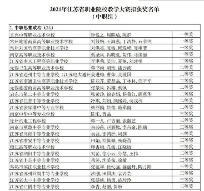 热烈祝贺工作室成员李青、贺盼、赵丽在江苏省职业院校教学大赛中获得三等奖