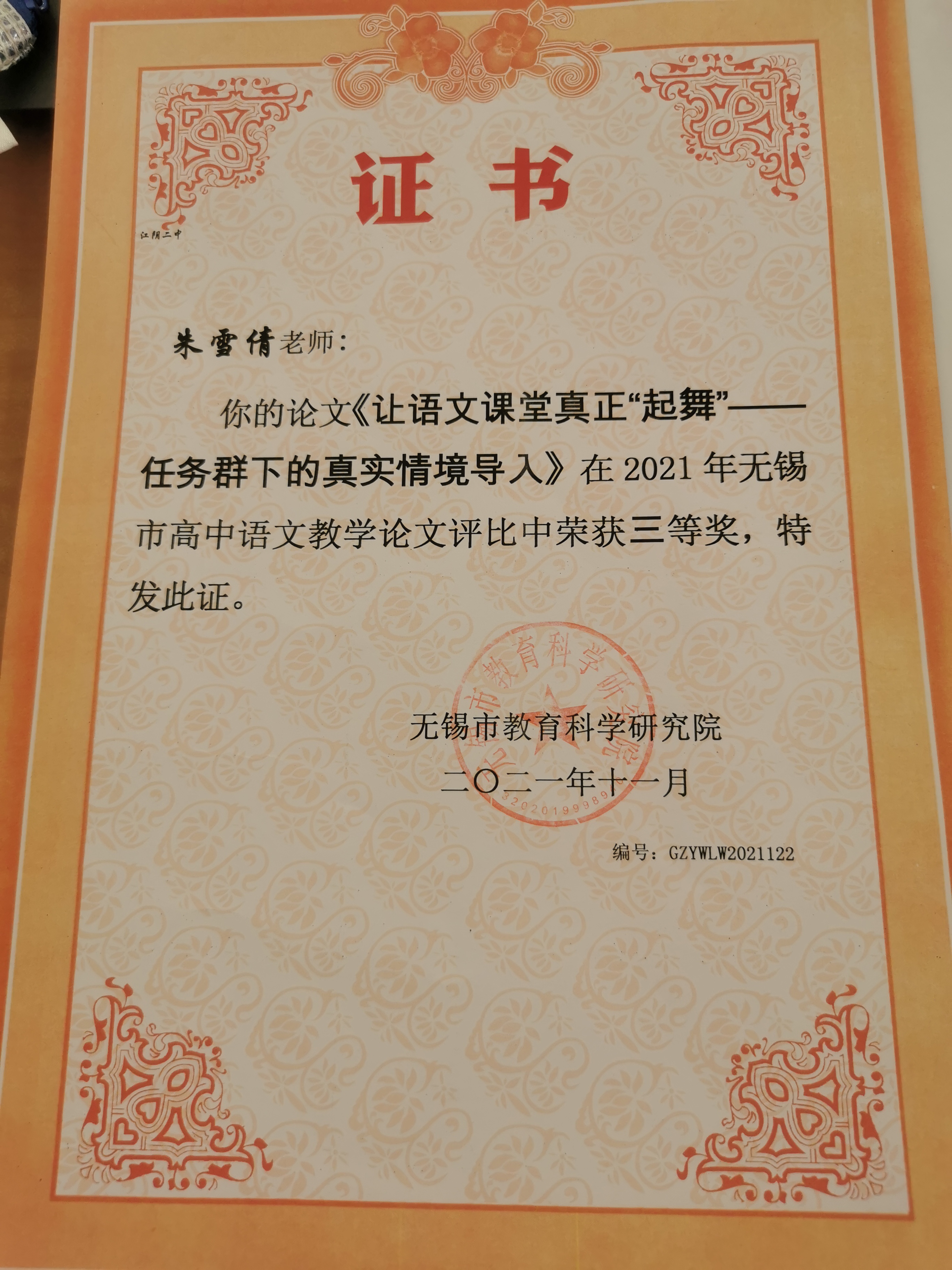 [1] 候迎迎.高中语文教学中创设真实情境的思考与实践[J].中学课程辅导(教师通讯).2020(17)