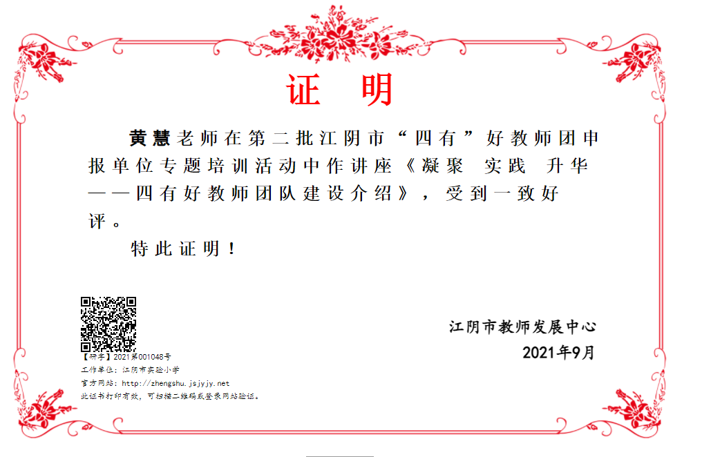 黄慧老师在第二批江阴市“四有”好教师团申报单位培训活动中作讲座