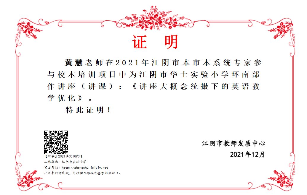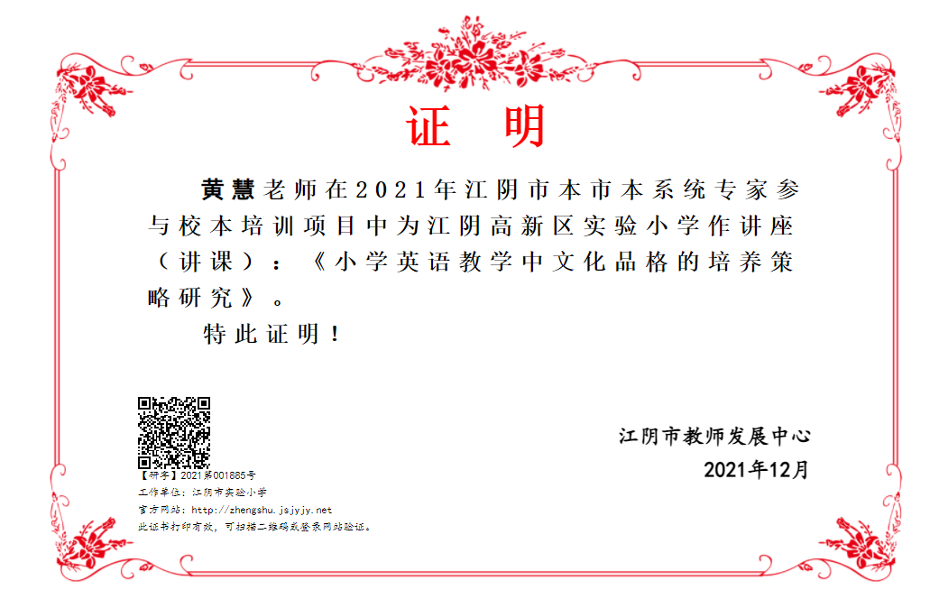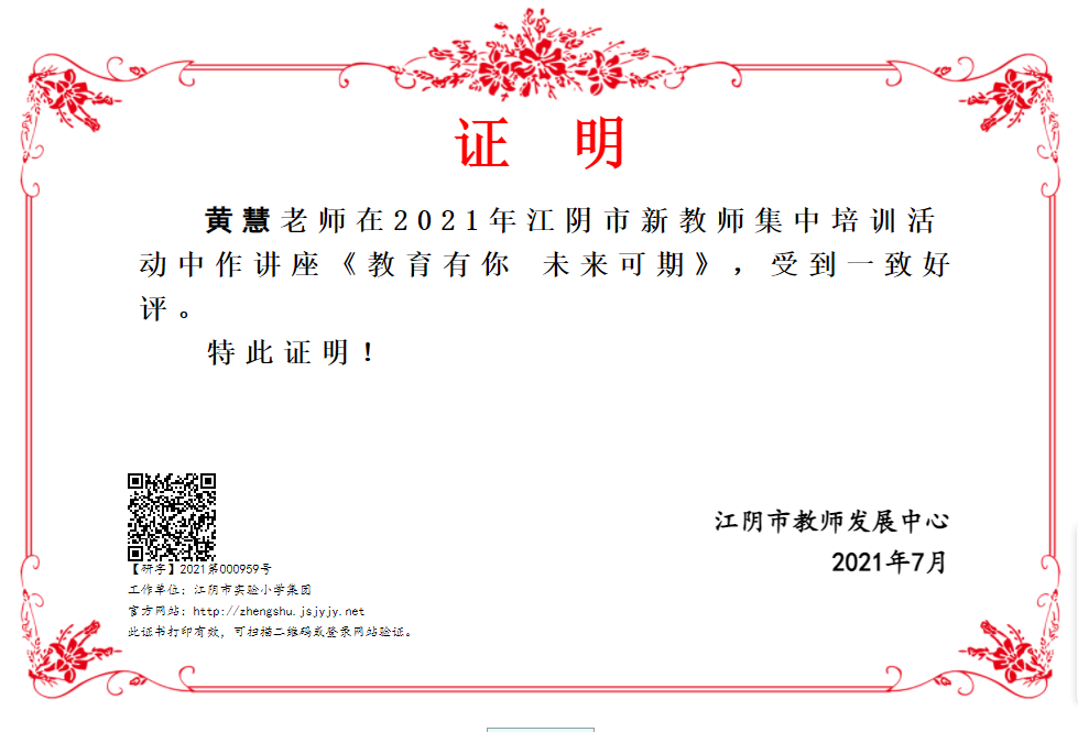 黄慧老师在2021年江阴市新教师集中培训活动中作讲座