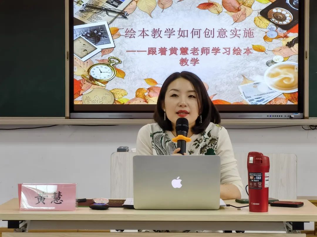 最后黄慧老师就“绘本教学如何创意实施”进行了专题性解读。她从“深度备课”“绘本解读和教学设计之间的关系”“绘本教学活动的有效设计”这三个层面进行了学术性的思考和阐述,具体指导教师如何用科研的眼光来看课堂。
