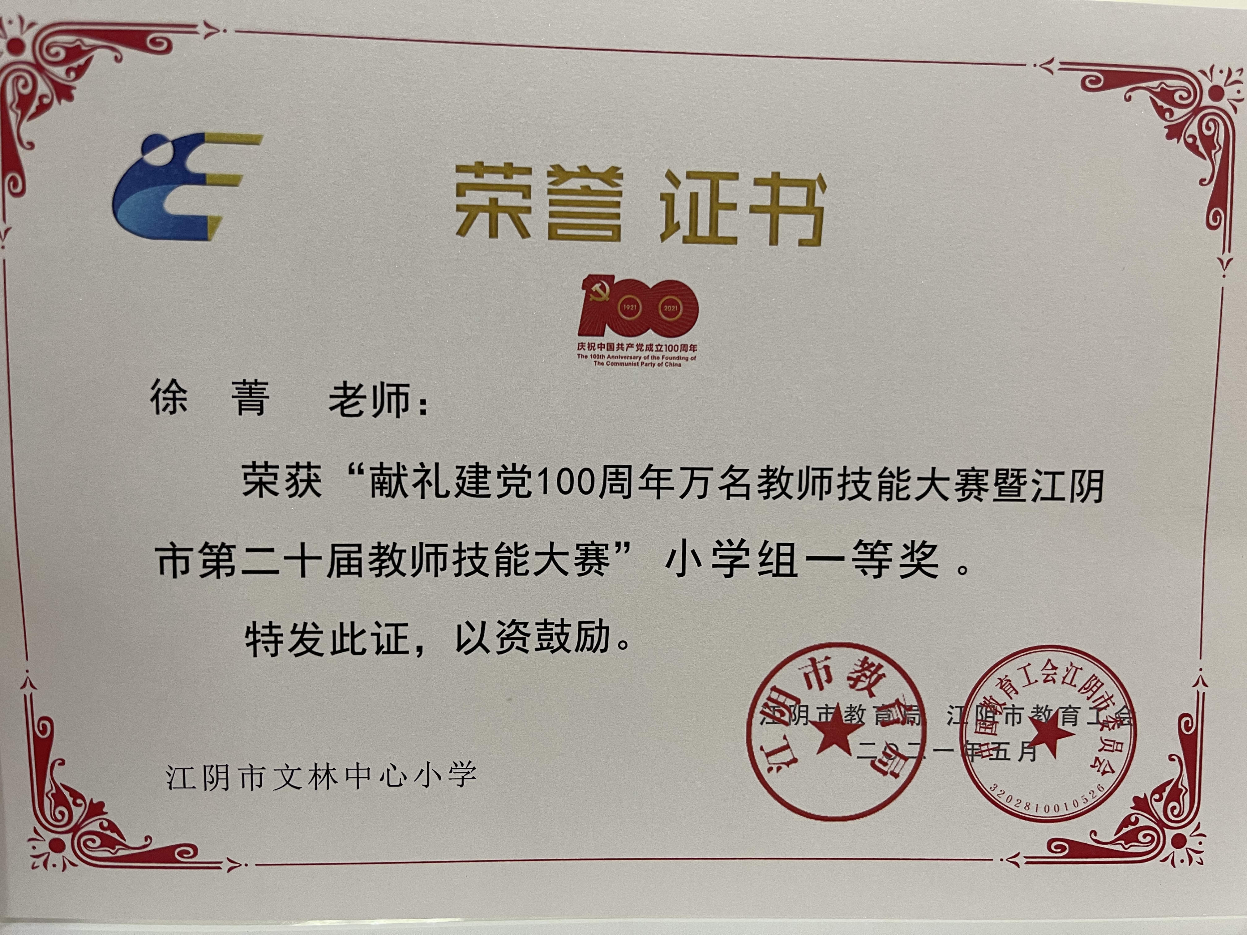 徐菁老师参加江阴市教师技能大赛获奖~~