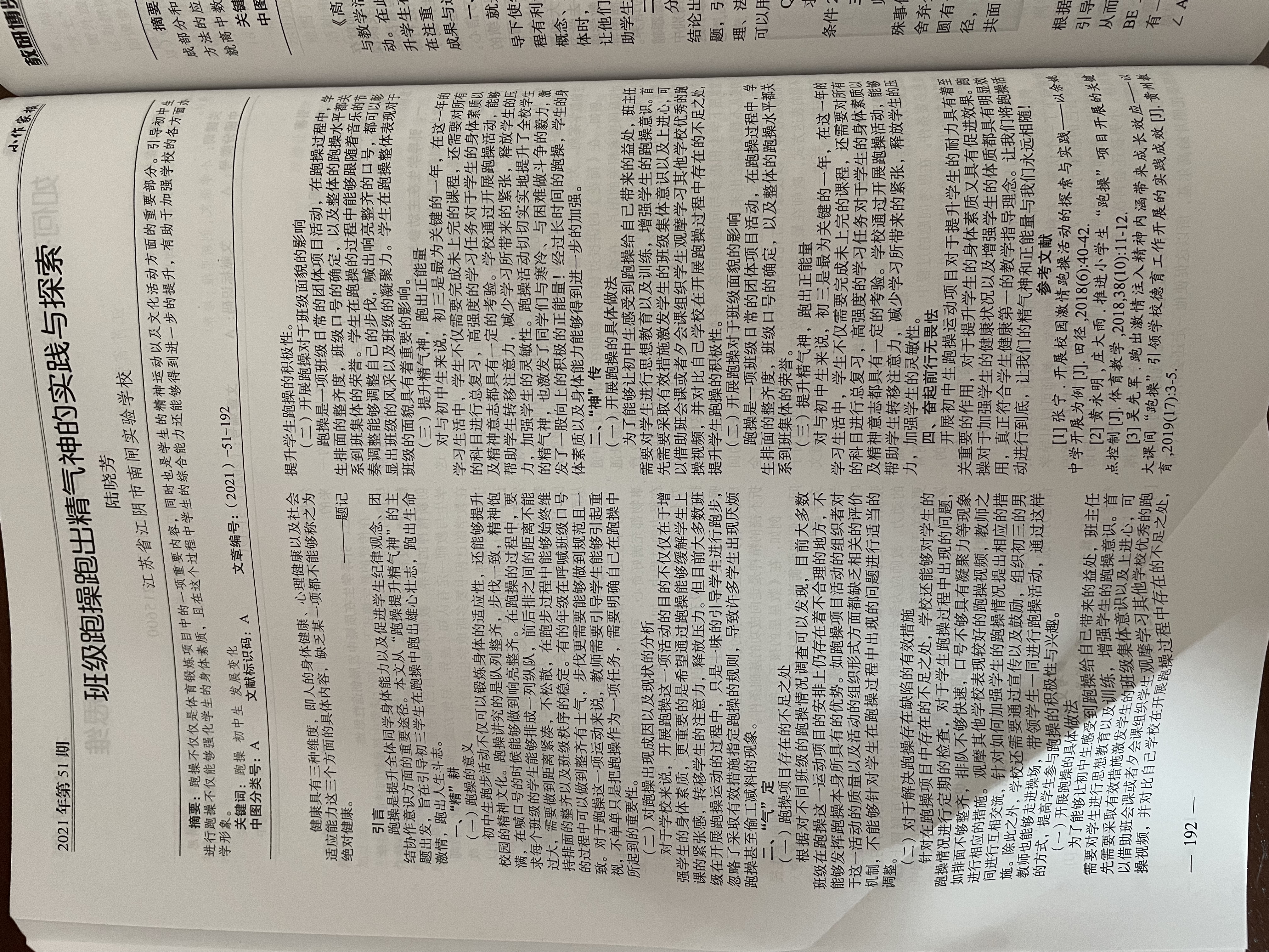 《班级跑操跑出精气神的实践与探索》论文发表