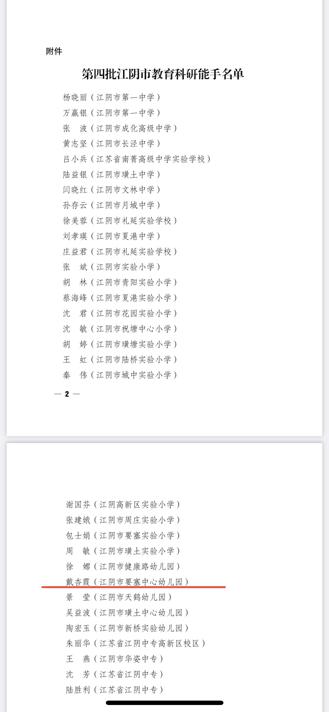 戴杏霞老师被评为第四批江阴市教育科研能手