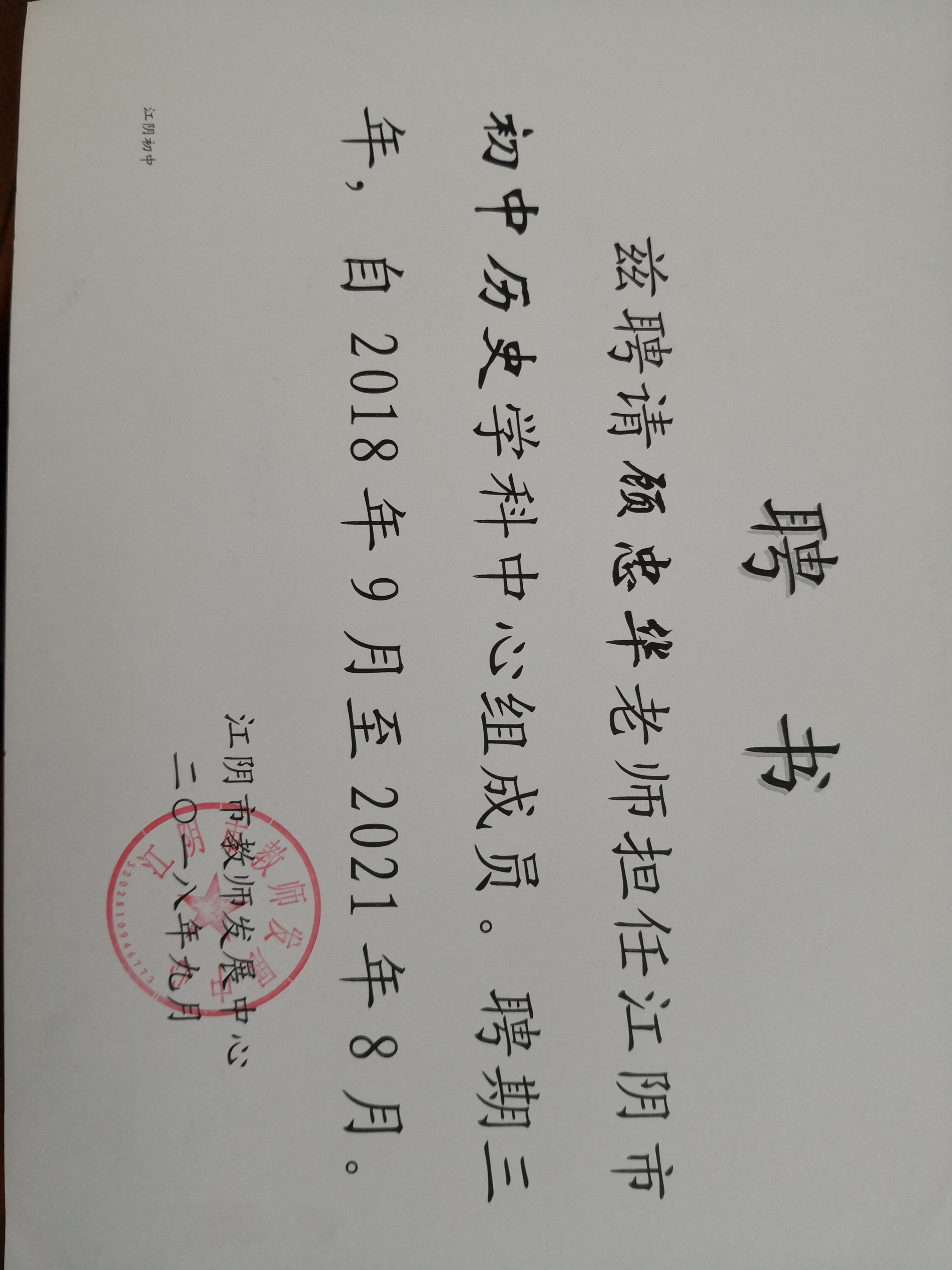 顾忠华202109被评为2019-2021学年度无锡市优秀教育工作者